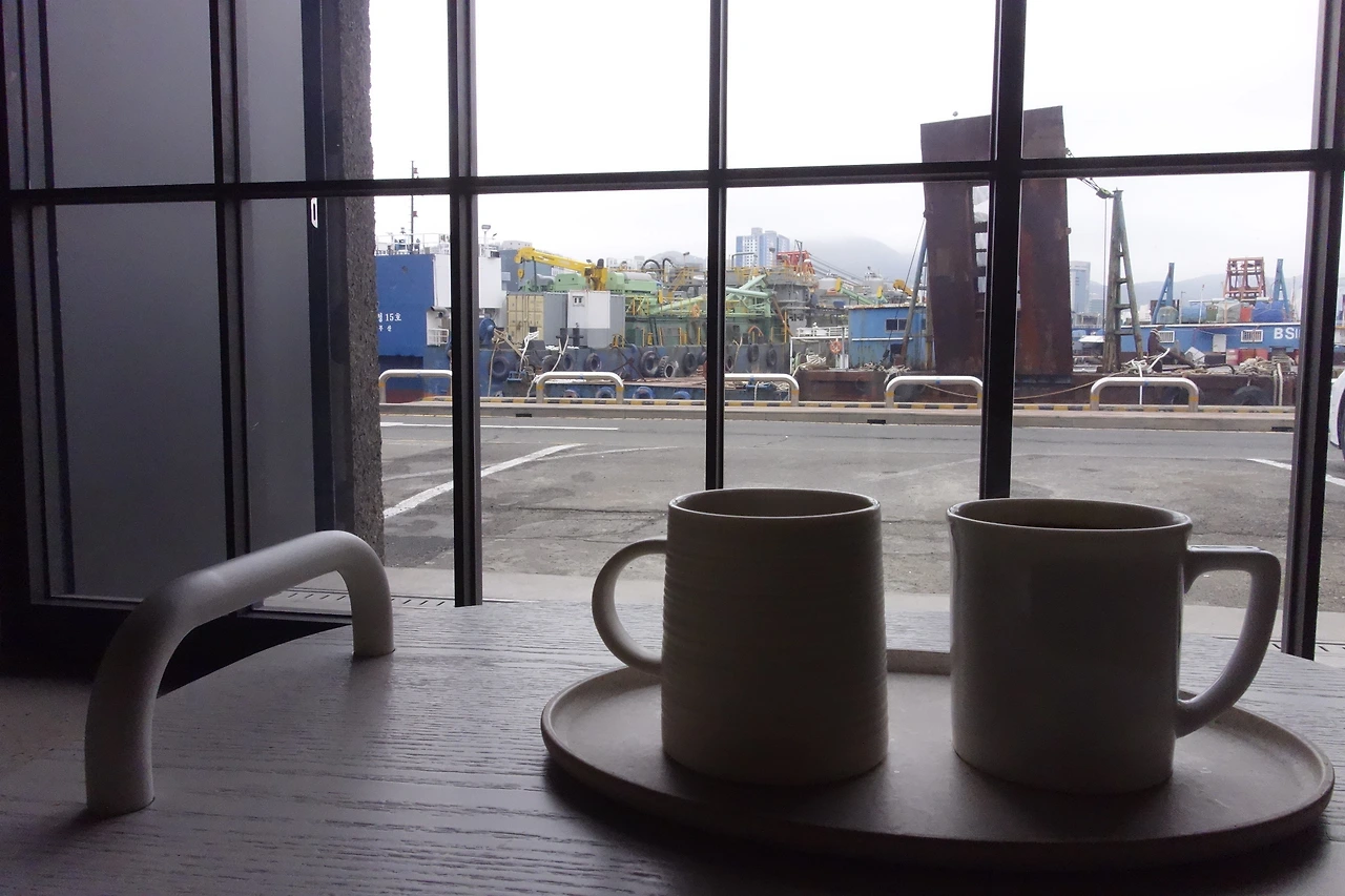 언제부터 영도가 커피의 성지가 되었을까? 영도 이색 카페의 리더는 신기산업이다. 이름조차 전혀 카페스럽지 않은 '신기산업'은 2016년 사옥에 카페를 넣으면서 생겼다. 방울 등 철제 제품을 만드는 신기산업을 알리기 위한 브랜드 스토어답게 옛 회사 간판과 구조물을 일부 남겨 회사의 스토리조차 카페에 덧입혔고 북항과 부산항대교 전망으로 입소문을 타기 시작했다.