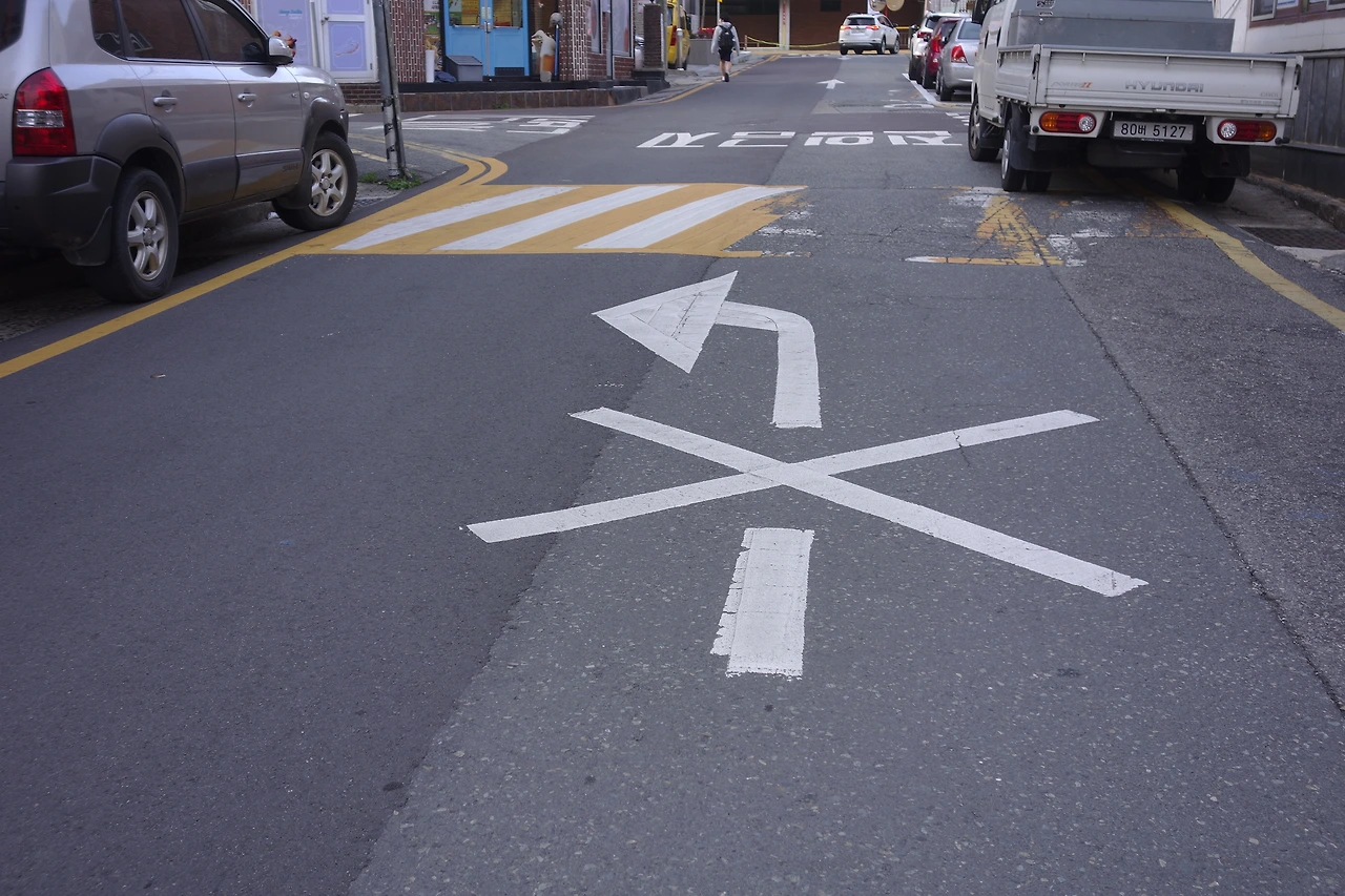 거제는 인구 24만의 소도시라 사람이 적다. 이곳 옥포는 제법 큰 동네에 속하는데도 거리에 사람이 별로 없다. 동네 도로의 횡단보도는 신호등 없는 게 대부분일만큼 차량이 적다. 붐비지 않은 곳에 살고 있다는 사실이 거주 쾌적성을 높여주고 있다. 한편 교통량은 많지 않지만 운전에는 각별히 주의가 필요했다. 옥포에서 운전자는 도로 바닥을 보고 운전해야 한다. 섬 지형 특성인지 언덕이 많고 길이 좁아 이면도로로 접어들면 일방통행과 진입금지 화살표가 어김없이 있었다.