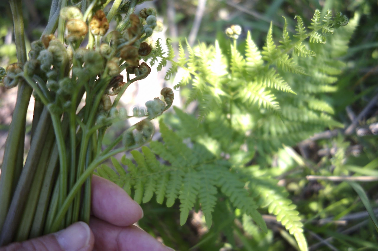 이동 중에 만난 고사리밭에 들어가 고사리도 몇가닥 뜯어보았다. 먹어보기만 한 고사리, 또 산길 다니면서 고사리잎 보기만 했지 식용이 되는 어린 고사리 순을 직접 따본 건 난생처음이었다. 숙소에 와서 야들야들한 생고사리 데친 걸 먹어본 것도 처음이었다. 그 어떤 과정을 거치지 않고 자연에서 식탁으로 직행하는 먹거리 체험은 '한달살기'가 아니면 어디에서 경험할까.