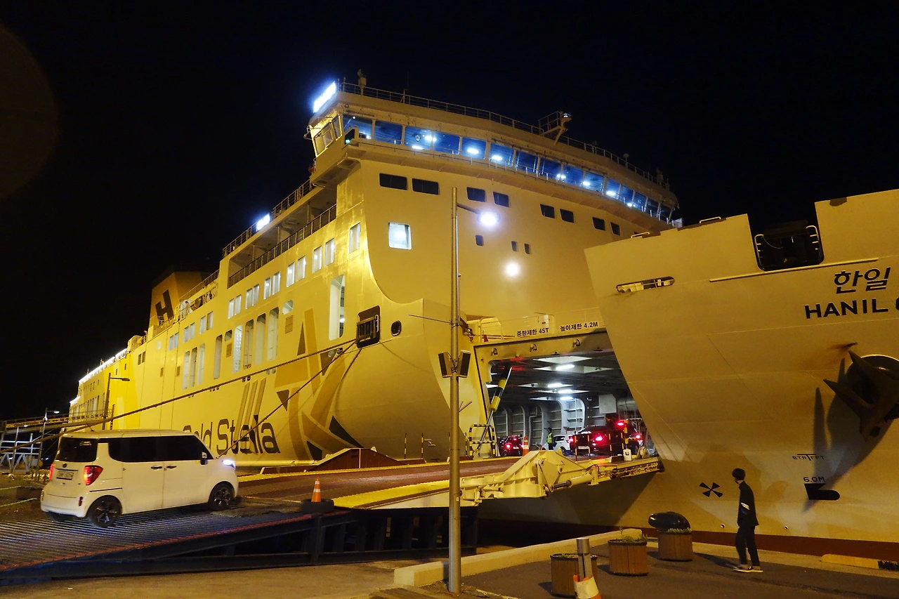 여수항에서 새벽 1시에 출발한 한일골드스텔라호가 사람과 차를 제주항에 7시에 데려다주었다.