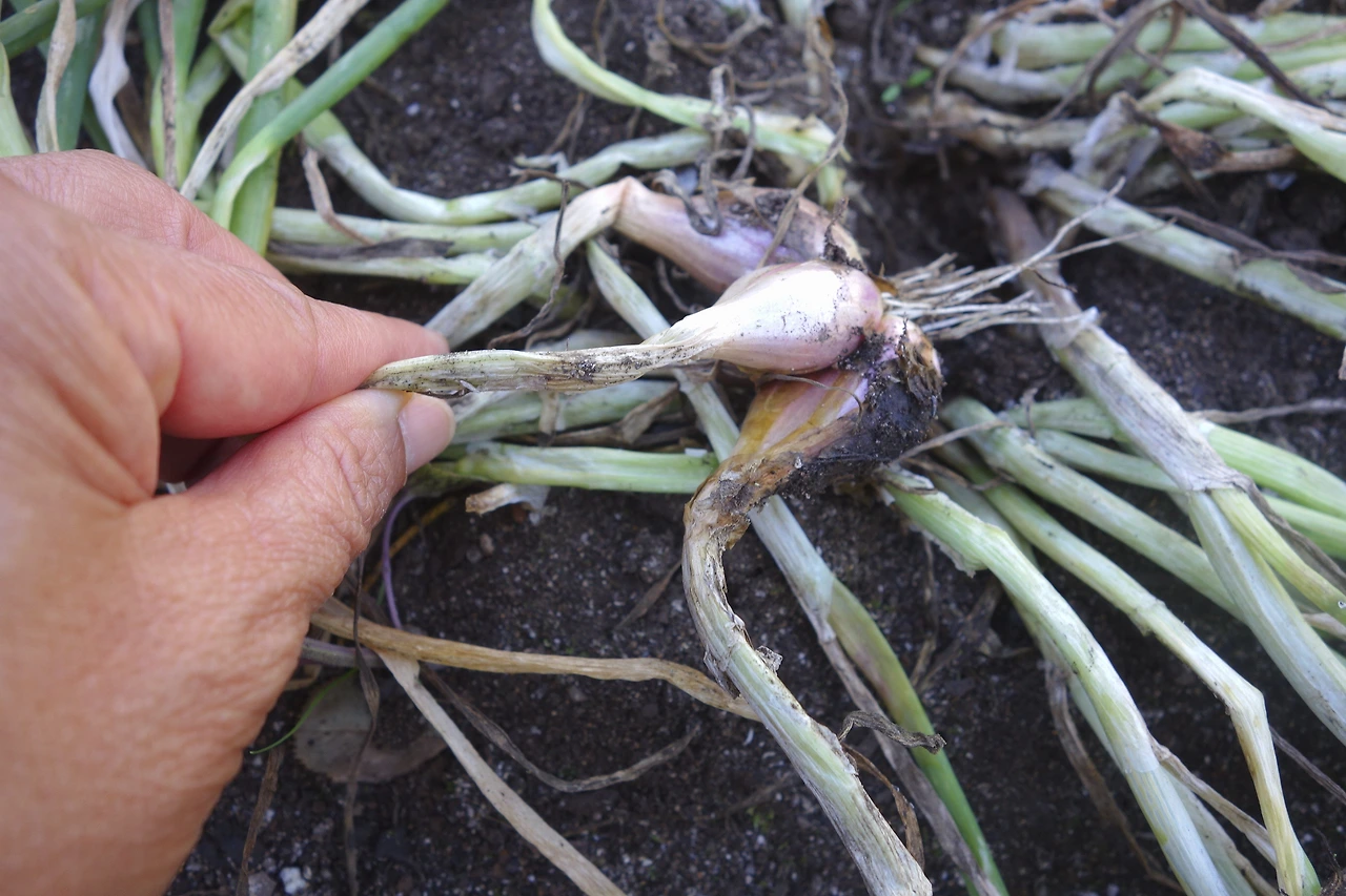 "이게 뭐예요? 마늘 말리시나 봐요." 했더니 "아니, 이건 쪽파 씨야."하신다. 쪽파의 알뿌리와 마늘을 구별못하는, 채소에 대해 하나도 모르는 도시 사람 둘이 답답해 보였는지 자기 집 본채 뒤 텃밭으로 데리고 들어가서 일일이 보여주신다.