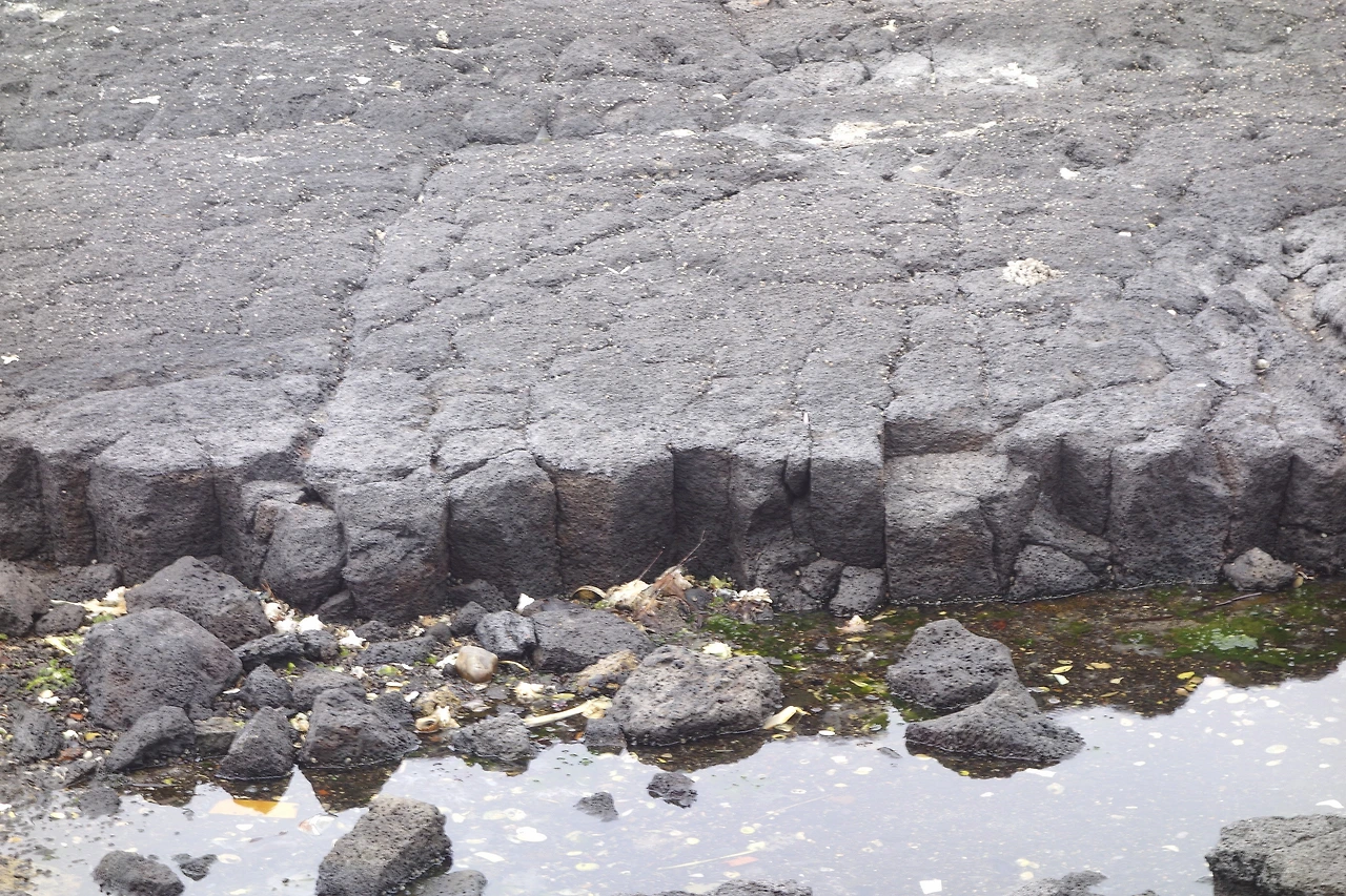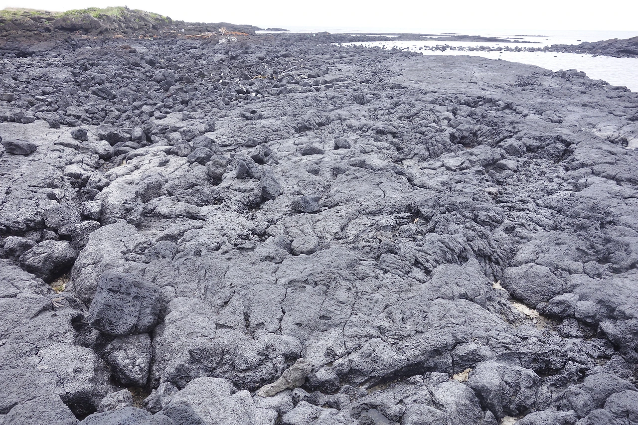 김녕해변의 용암대지를 만든 것은 파호이호이 용암(Pahoehoe lava)인 반면, 점성이 작아 거칠거나 날카로운 용암 표면을 보이는 용암은 *아아 용암(Aa lava)이라고 한다.(*제주공항 근처의 용두암이 대표적인 아아 용암이다.)