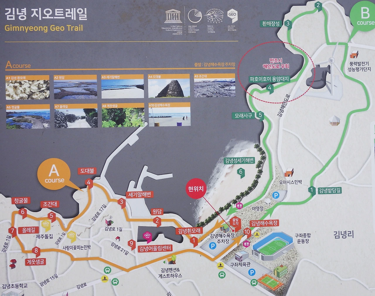 집담이나 밭담을 만드는 재료돌인 검은 현무암은 제주 해변에 지천으로 있다. 그런 해변 중에서도 김녕바다는 유독 검은 돌이 많은 곳이다. 지질학적으로 유의미한 장소인지 제주지질공원으로 정해놓았다. 김녕 지오트레일을 따라 김녕 바다를 걷는다.