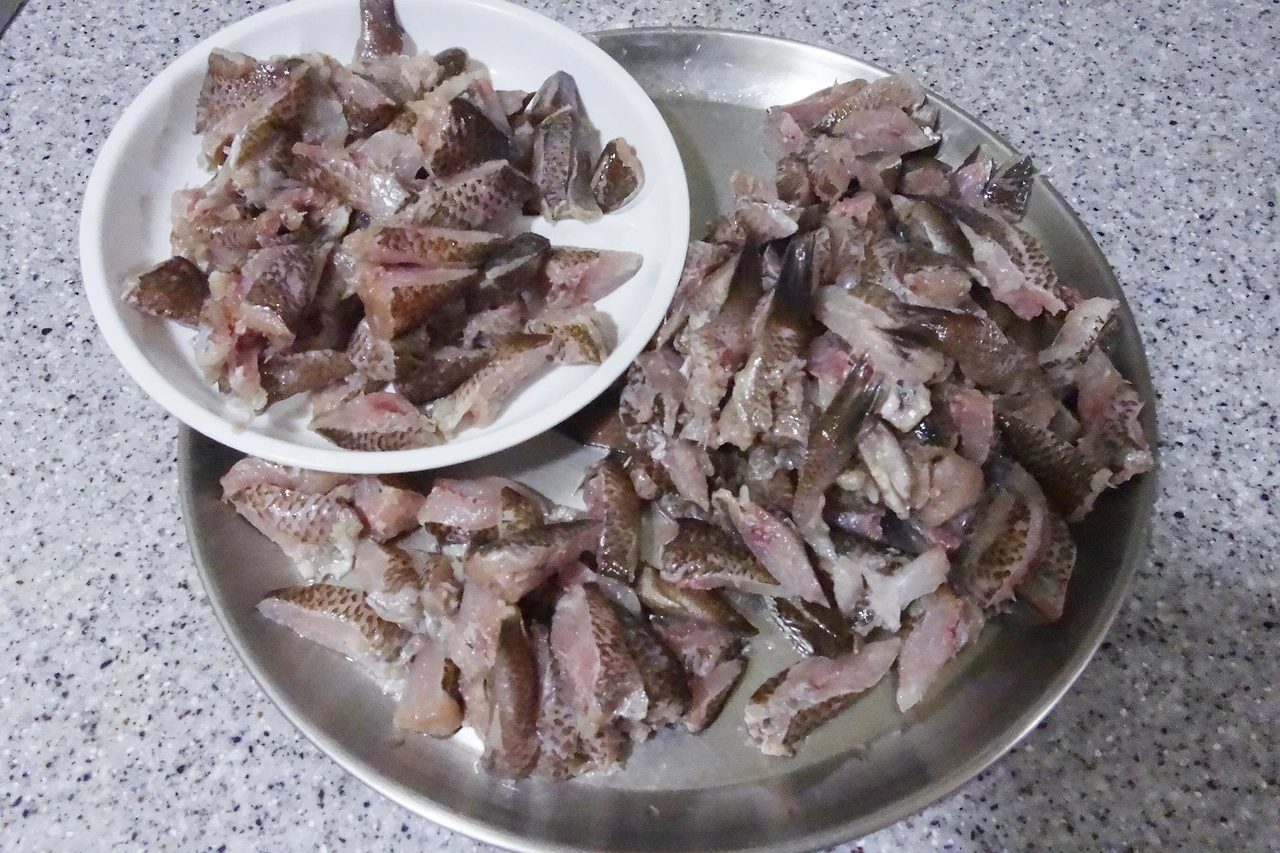 집에 와서 자리를 뼈째 어슷 썰고 혹 꼬리지느러미가 입안에서 거슬릴까 손님용 절반은 꼬리지느러미도 뗀 채 준비해 두었다. 육수 격인 톳물김치에 자리회를 넣어 섞고 삶은 소면까지 따로 내어 놓으니 '손님맞이 자리물회'가 완성되었다.