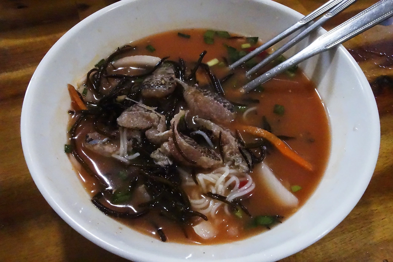 예전 제주 가족여행 때 식당에서 자리물회를 시키니 우리가 외지인인걸 알아본 주인이 한번 더 확인을 했다. 지느러미째 나와 먹기 어려울텐데 그래도 시키겠느냐고. 이러니 세꼬시 회조차 못 먹는 친구에겐 자리물회는 넘지 못할 벽일 수도 있겠다. 어쨌든 겪지 않고서는 제주 사람들이 즐기는 독특한 맛의 세계를 알 수 없으니 '제주에 왔다면 자리물회를 꼭 드셔 보시라.'