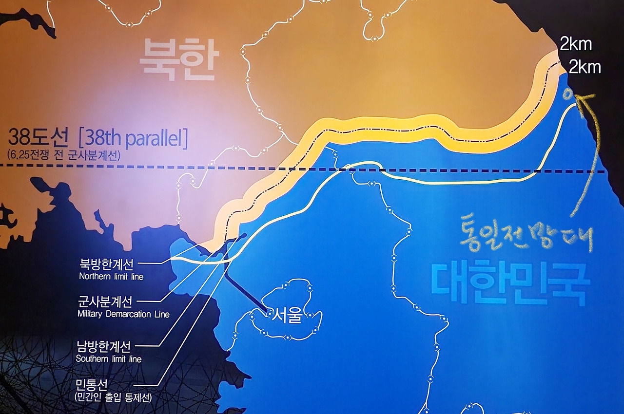 군사분계선인 38선에서 3.8km 떨어진 통일전망대(민통선 안)