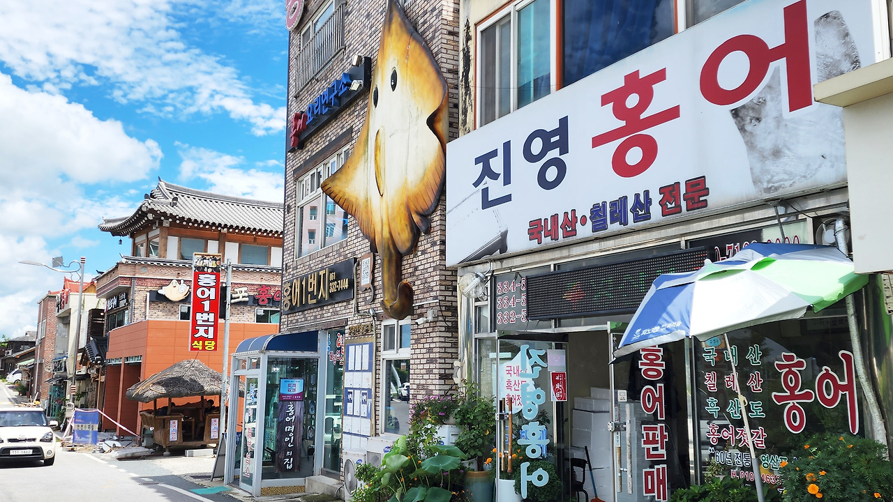 '나주배'와 '나주곰탕'으로만 알고 있었던 나주는 알고 보니 홍어의 본산이었다. 정확히 이야기하면 삭힌 홍어의 본고장이었다. 흑산도 홍어가 나주로 실려와서 삭힌 홍어로 가공되어 전라도는 물론 전국으로 판매된다. 한 때 번성했던 증거로 국내 유일의 내륙 등대까지 남아 있는 포구, 나주 영산포에 가면 강변에 홍어 가공장과 판매장, 홍어 식당이 밀집한 곳이 나온다. 600년 홍어 거리다.
