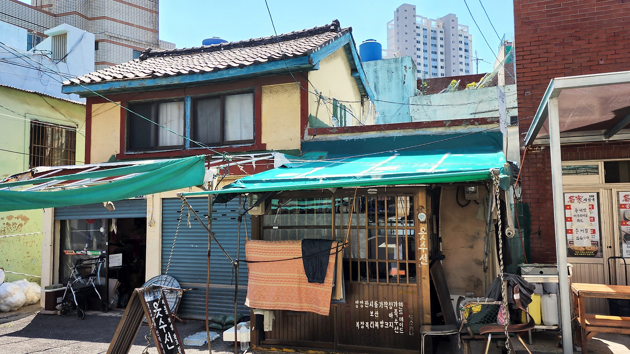 산복마을이 각자의 집을 판잣집이라도 얼기설기 만들어 살았던 단독주택 동네라면 매축지마을과 소막마을은 피난민들의 임시 집단수용소에서 유래되었다. 당연히 연립구조다.
