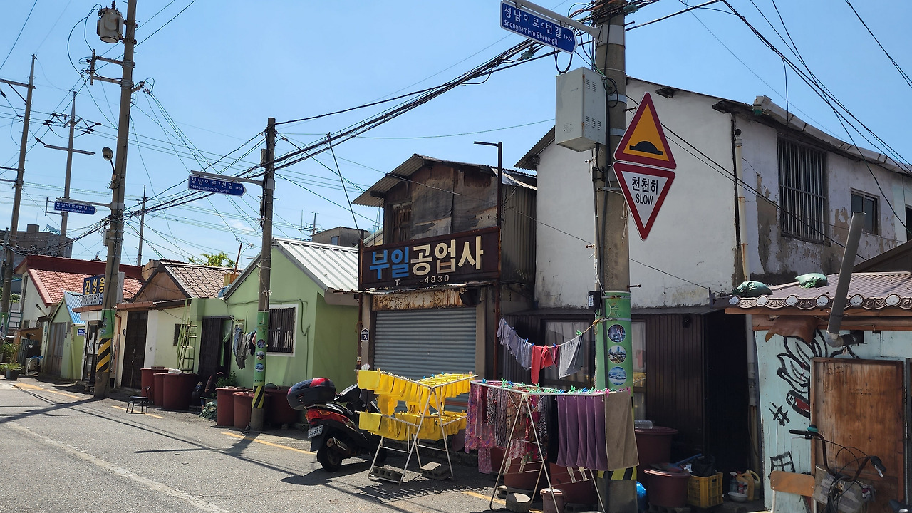 매축지마을의 길은 매우 좁았다. 한 사람 간신히 지나다닐 수 있는 좁은 골목 양쪽으로 수십 가구가 다닥다닥 붙어있었다. 문만 열면 주방과 방으로 곧장 연결되는 구조의 비슷한 크기의 집들이 연립한 구조였다. 좁은 집에 두기 어려운 가재도구들이 집 앞에 나와있어 집과 집 사이의 골목을 지나는 동안 남의 집에 무단침입이라도 한 듯 미안함이 들었다.