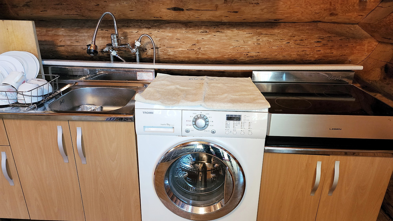 3) 세탁기는 연결이 필요하다. -> 싱크대 한 칸을 빼낸 자리에 세탁기를 위치시키고 연결했다.