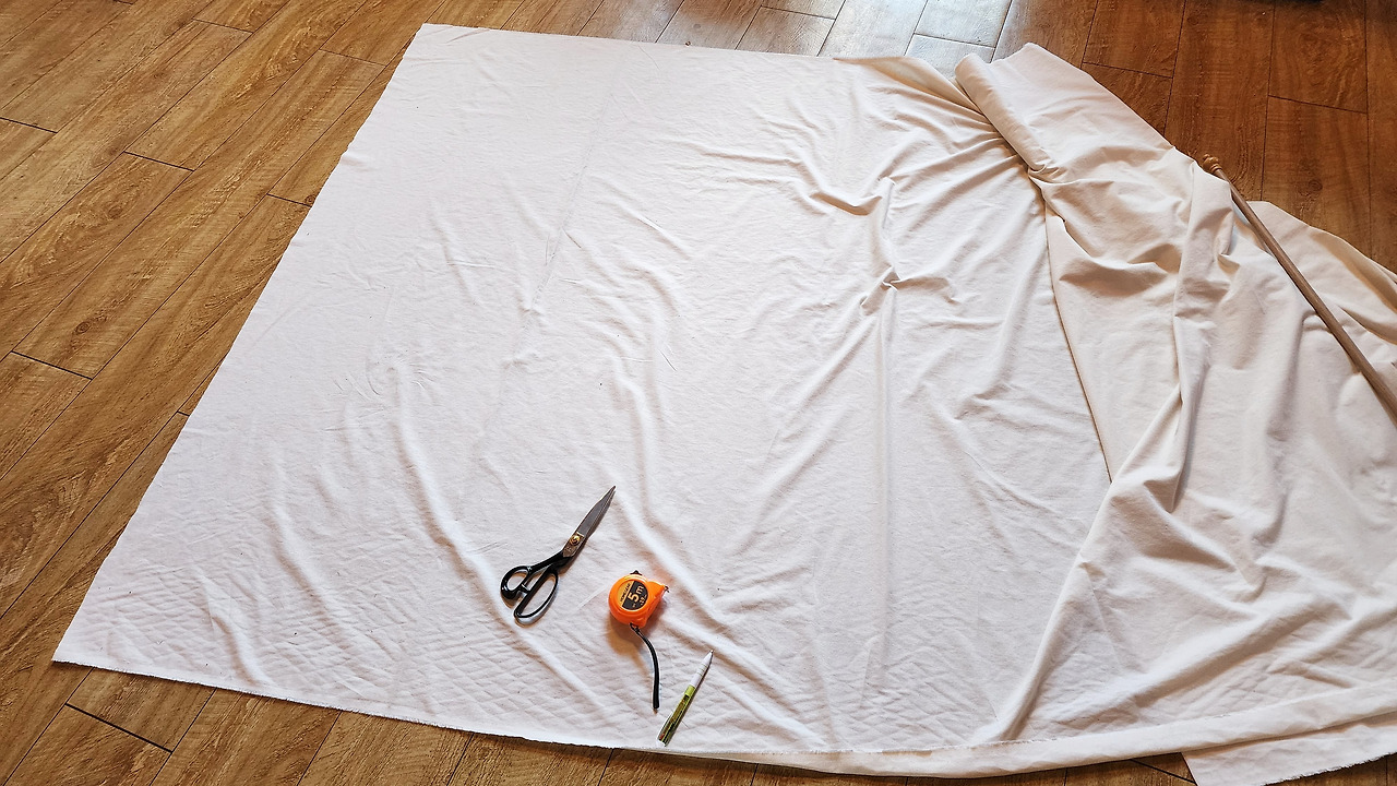 5) 커튼도 필요하다. -> 광목천을 구입해 커튼을 만들어 걸었음.