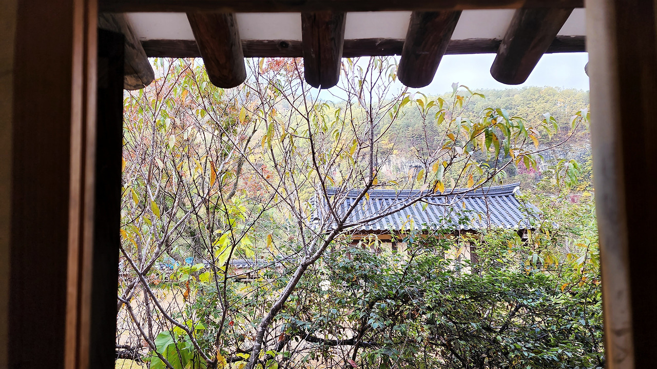 경치가 끝내주게 좋았던 농암종택 방 창문을 열고... 그러나, 금강산도 식후경이라~