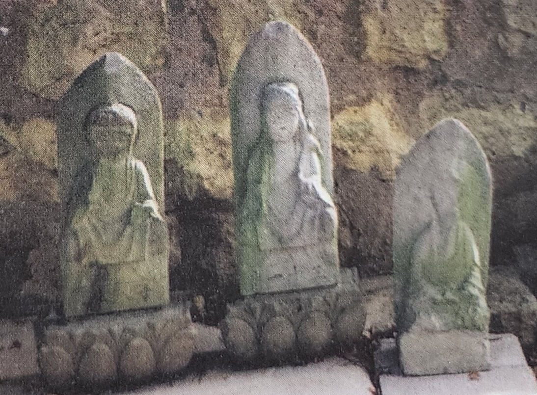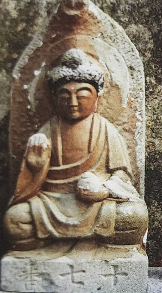 유달산 88개의 불상 중 일부. 17번(十七番)이라는 번호가 선명하다(왼쪽) (사진 출처 : 목포 역사와 이야기 100선(p.111-112))