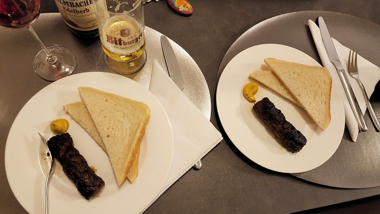 프랑크푸르트 숙소 주인이 차려내온 맥주와 구운 소시지 한 상