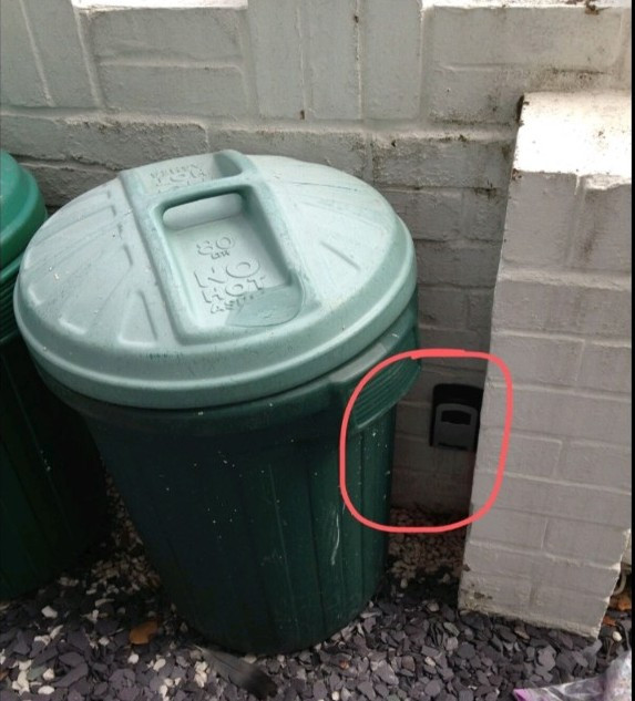 다행히 집은 다 똑같이 생겼는데 울타리와 쓰레기통은 집집마다 달랐다. 사진에는 녹색 동그란 쓰레기통 뒤로 흰색 담장이 보였다. 거리 왼쪽 끝부터 차례대로 한 집씩 탐색했다. 하나씩 체크하다가 마침내 사진 속 쓰레기통을 찾았다. 담장에 붙은 열쇠함이 보였다. 주인이 알려준 자물쇠 비번 4자리를 맞추자 '열려라 참깨'처럼 뚜껑이 열리고 열쇠가 내 손에 떨어졌다.