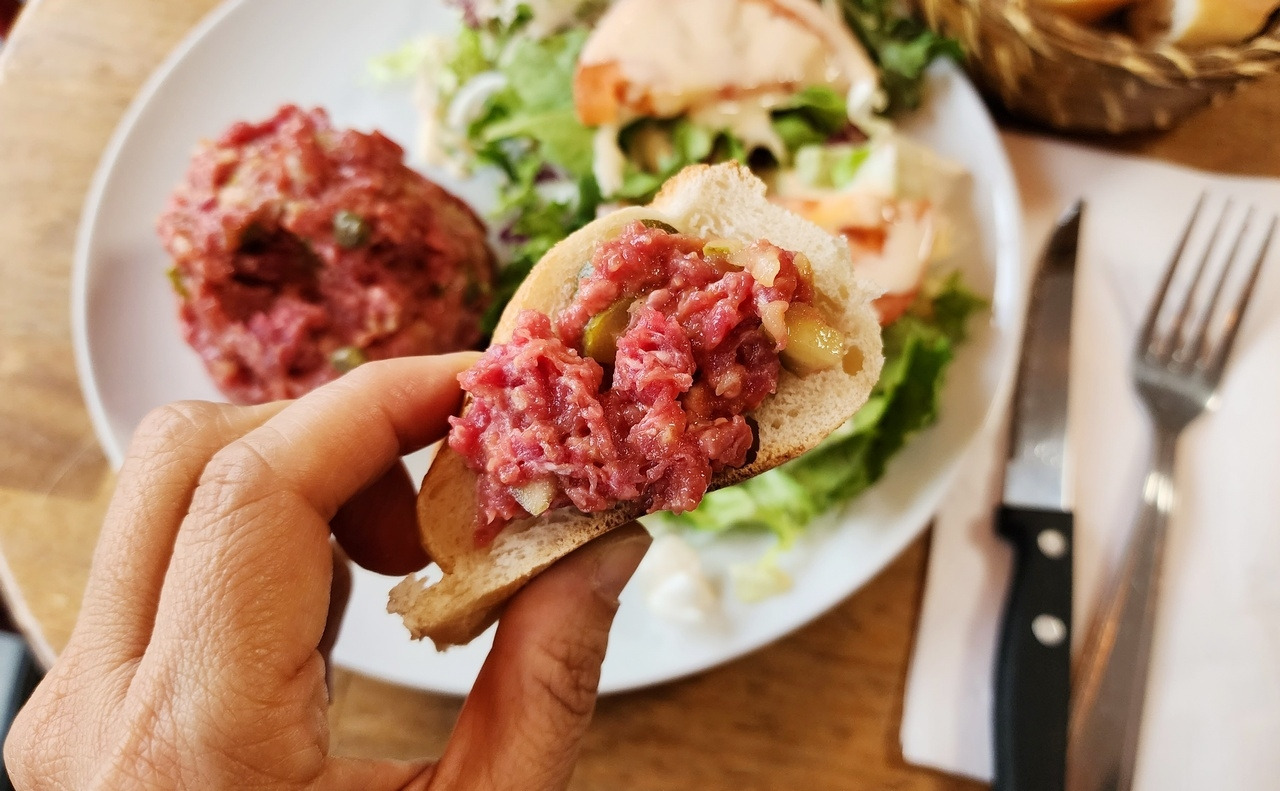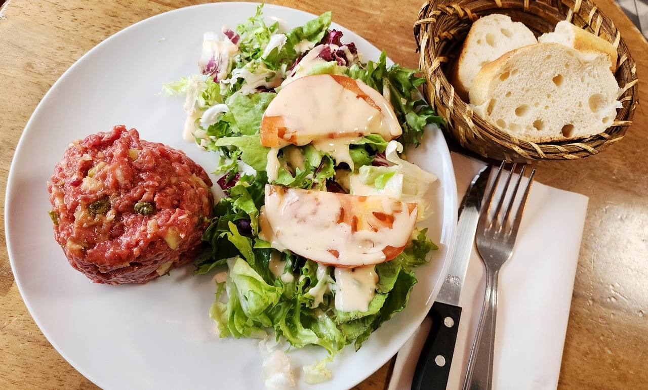 그중 프랑스에 가서 첫 번째로 먹어보고 싶은 요리는 타르타르 스테이크(Tartare de Boeuf)였다. 우리나라의 소위 '칼질'하는 식당에서 스테이크를 주문했을 때 듣게 되는 고기 굽기의 선택지 세 가지, '레어(Rare), 미디엄(Medium), 웰던(Well Done)'의 범주를 넘어서는 스테이크가 있다고 했다. 날고기를 싫어하는 유럽인들이 살짝 굽기도 아니고 아예 생고기로 먹는 요리라고 하니 궁금증이 더했다.