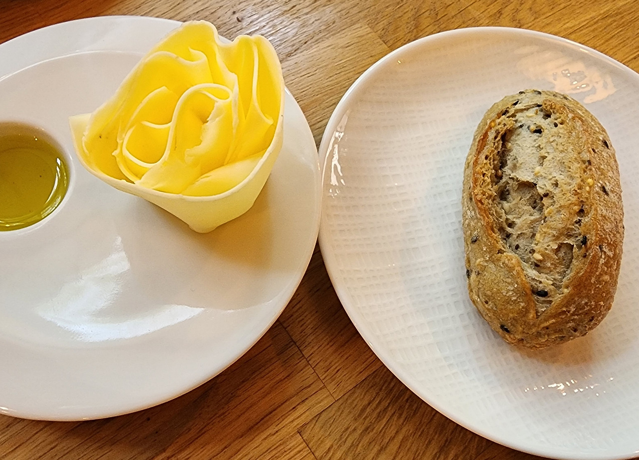 버터 꽃이 피었습니다~ 주문한 요리 전에 나온 것들과 식전 빵