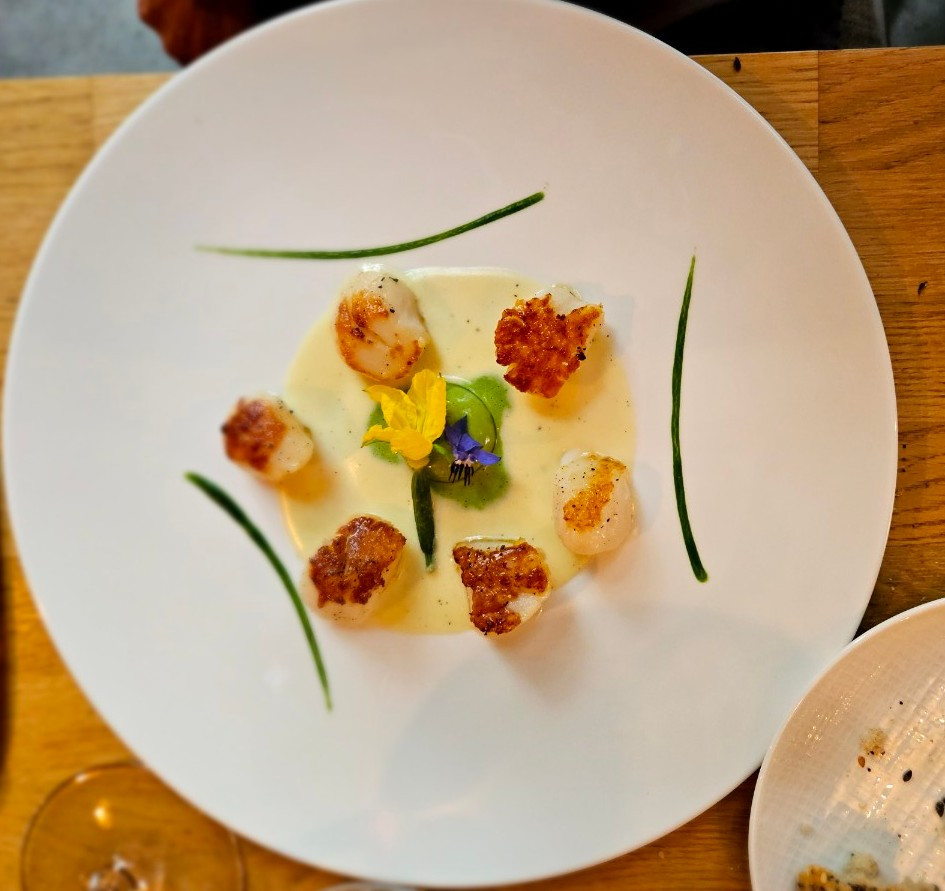 드디어 내가 주문한 푸아그라와 관자 요리를 포함해 음식이 나왔다. 우리에게 서빙되는 건 음식이 아니라 예술이었다. 먹는 게 이렇게 예쁜 건 반칙이 아닐까 싶을 만큼 데코레이션이 섬세했다. 커피를 시켰더니 달콤한 후식까지 앙증맞게 나와 끝까지 감동을 주었다. 셰프가 음식 설명과 와인 추천을 해주는가 하면 와인도 직접 따라 주는 등 서비스도 품격 있었다.