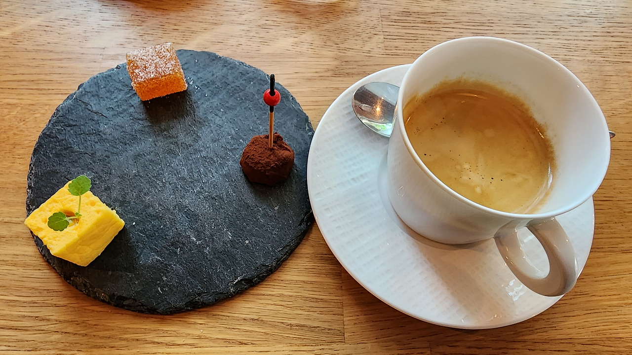커피와 함께 제공된 한입거리 달콤한 것들, 카페 구르망
