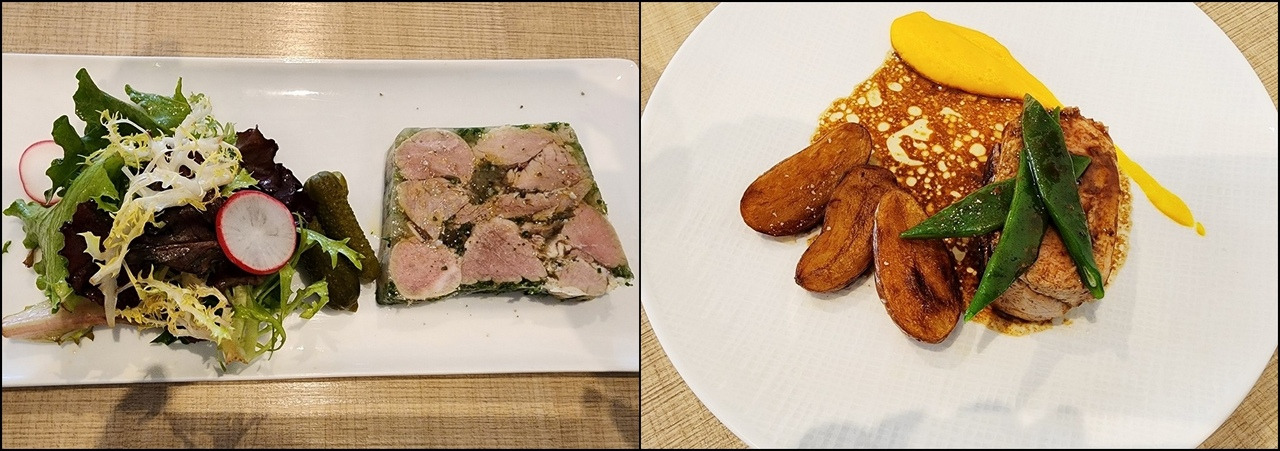 내가 주문한 앙트레 잠봉 파슬리(Jambon Persile)와 메인 메뉴 돼지고기 요리