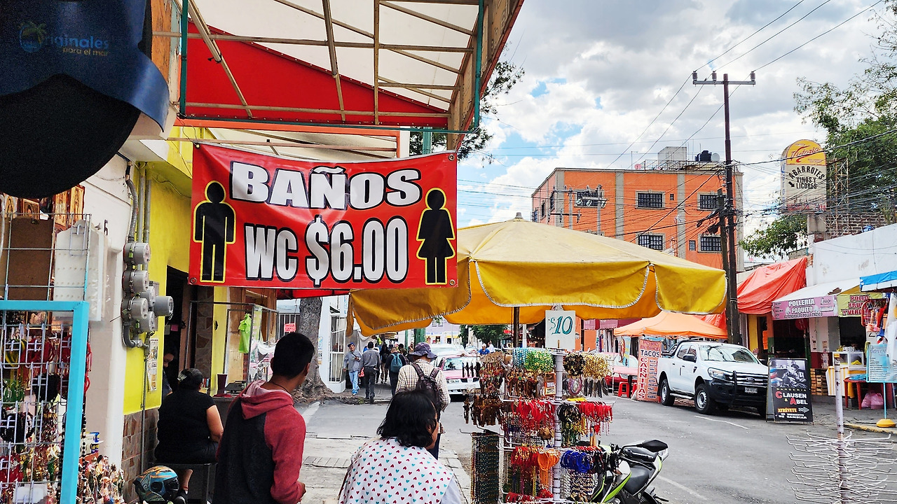 멕시코 도시 네 곳을 한 달반째 다니는 동안 무료 공공 화장실을 거의 본 적이 없다. 공공화장실(Baño Publico)이란 표시가 있으면 5~6페소 정도의 반값 화장실을 의미했다. 이런 돈 받는 공공화장실조차 충분하지 않은지 사설 화장실 영업이 성행한다. 돈을 내고 식당이나 가게에 딸린 화장실만 이용하는 서비스다. 길거리에 'Baño(바뇨)'나 'WC' 간판이 그것이다.