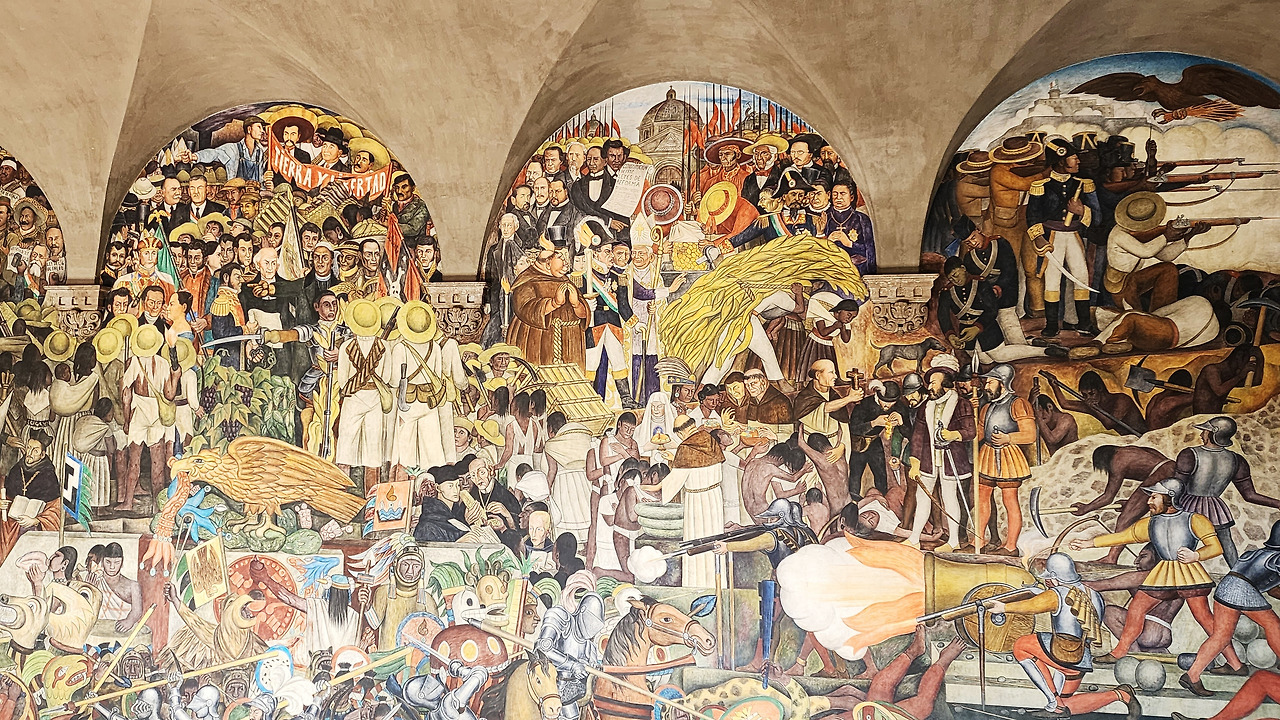 대통령궁의 벽화(디에고 리베라 작품). 멕시코의 역사, 문화, 전통을 망라한 그림.
