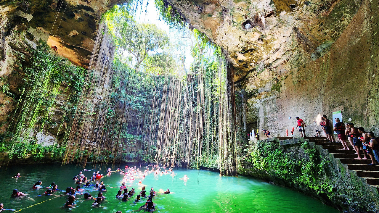 세노테는 일반적인 석회동굴과도 다르고 지하수에 석회 지역 특유의 광물질이 녹아들어 물빛이 오묘하다. 고대 마야인들은 세노테를 신성하게 여겨 이곳에서 신에게 제사를 지냈다고 한다.