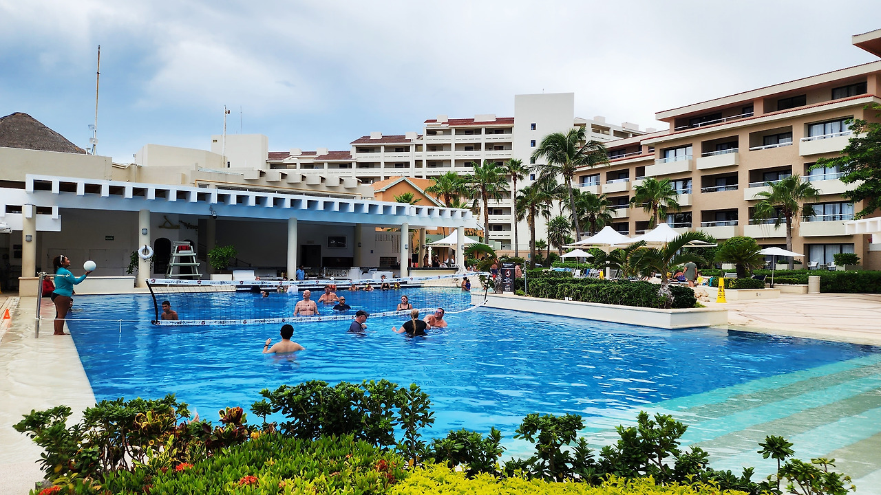 호텔 수영장에서 수중 배구를 즐기는 숙박객들. 요일별로 프로그램이 있는 것 같았다.
