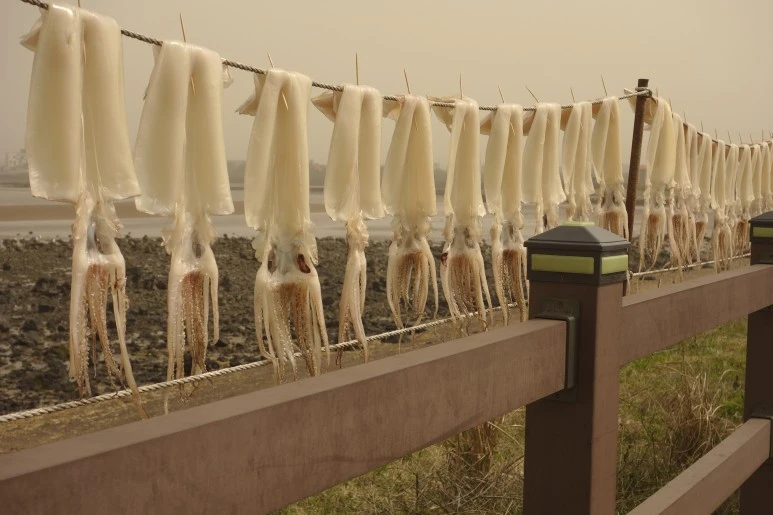 오름에서 내려와 '종달이 바당길'을 걷다 보면 그동안 안보이던 사람 구경을 할 수 있는 곳이 있으니 바로 목화 휴게소이다. 휴게소 앞 오징어 빨래가 펄럭였다. 위치가 올레길 1코스의 딱 중간 지점이니 목도 칼칼하고 쉬고 싶을 때 안주가 떡하니 눈앞에 어른거리는 꼴이다. 이 정도 유혹엔 넘어가 줘야 여행자의 풍류 아닌가!