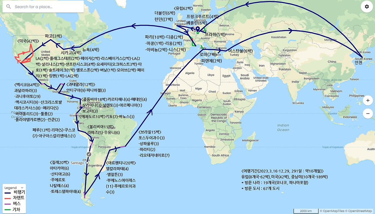 & 여행기간 : 2023.3.16~12.29(290일, 이동포함)