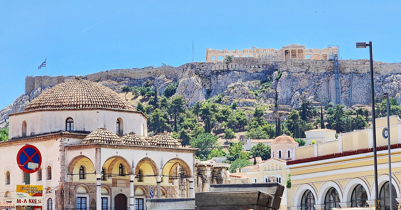 아테네 관광의 중심 모노스트라키 광장에서 고개만 들면 보인다. 아크로폴리스