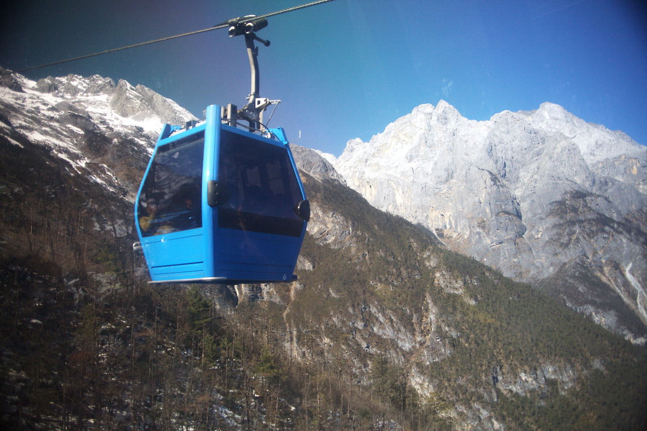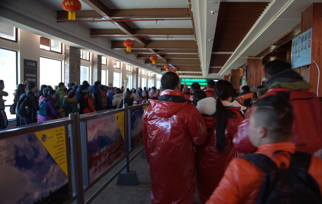 빙천 공원은 전동차를 20분 타고 간 후 케이블카를 타야 했다. 케이블카는 해발 3,356m에서 출발하는데 아마도 세계에서 가장 높은 케이블카가 아닐까? 케이블카 타는 곳에서부터 머리가 조금씩 지끈거리기 시작했다. 고산증세였다. 안 그래도 산소가 부족한 고도인데 사람 빼곡한 실내 케이블카 대기 건물 안에서 인파에 떠밀려 천천히 한 발자국씩 앞으로 옮겨야 했다. 이러다가 죽는다면 내 사인은 ‘고산증의 산소부족’이 아니라 ‘사람들이 호흡으로 뿜어내는 이산화탄소 질식사’ 일지도 몰라. 어딜 가도 ‘너무 많은 중국인(헌뚜어런(很多人=너무많은사람))’은 나의 관광 쾌적도를 넘어 이제 내 생명까지 위협할 정도라니... 이런 생각이 들 때마다 준비해 간 산소를 기포수 헤아려가며 반모금씩 홀짝거렸다.