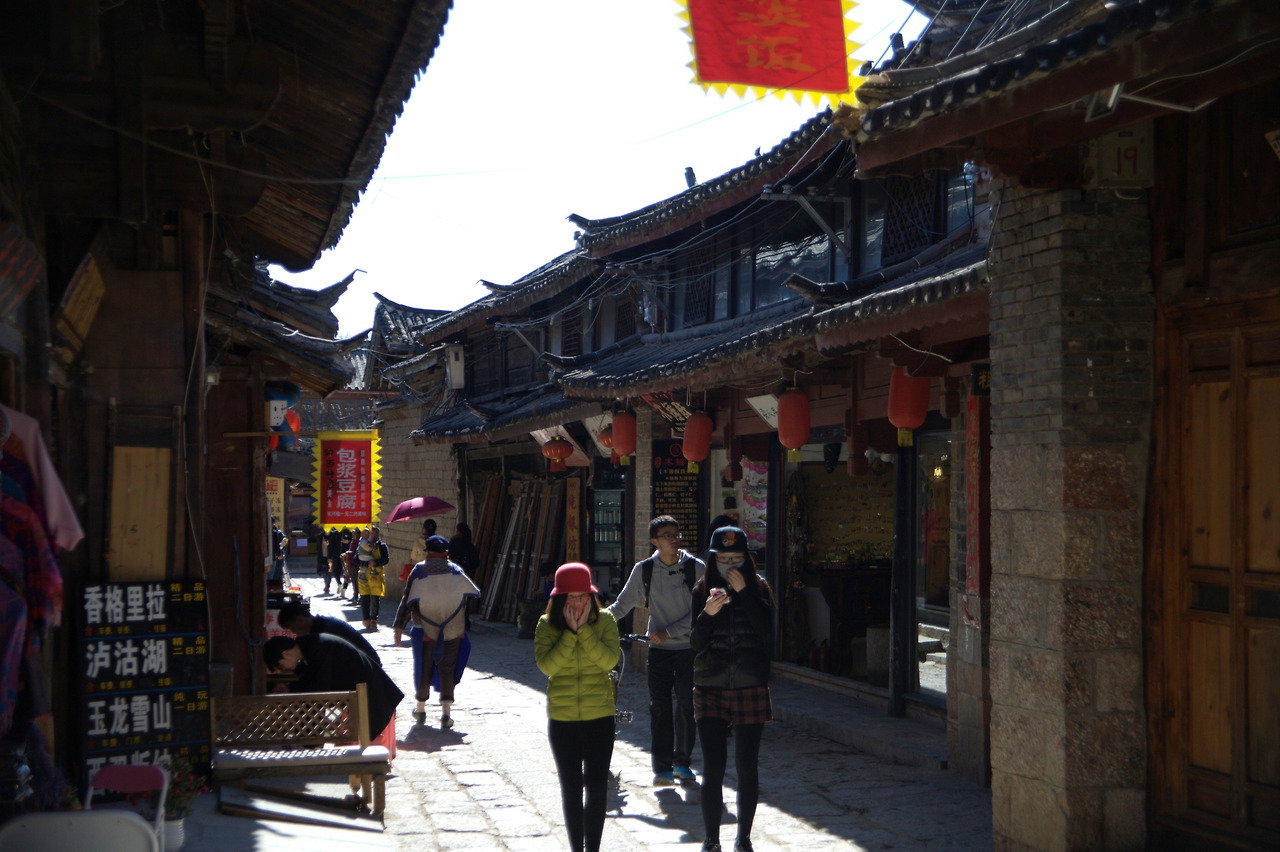 여행자도 젠트리피케이션 당한다. 리장의 사람 파도를 피해 리장을 벗어나고 싶었고 외곽으로 눈을 돌렸다. 리장은 리장 고성으로 알려진 다얀(大研[dàyán])외에도 수허고진(束河古镇[shùhégǔzhèn]), 바이샤고진(白沙古镇[báishāgǔzhèn])을 품고 있다. 수허고진은 리장고성에서 북쪽으로 5km, 바이샤고진은 수허고진에서 5km 정도 떨어져 있다.