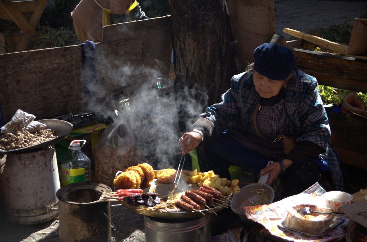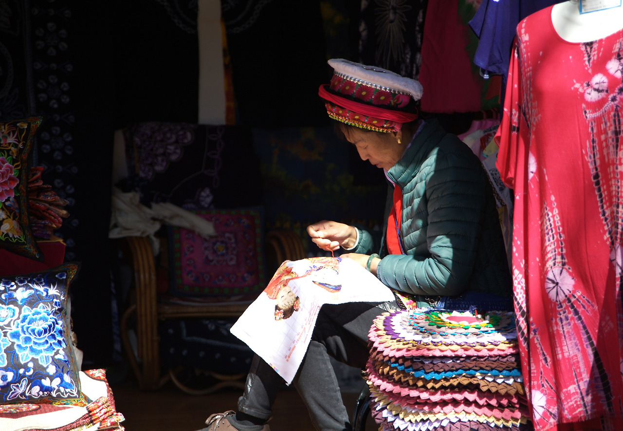 수허고진과 바이샤고진은 리장에서 자전거를 빌려 다녀오면 딱 좋을 거리였다. 아쉽게도 자전거 대신 이층 버스를 타고 수허고진에 갔다. 수허고진도 관광객이 제법 있었지만 리장에 비할 바 아니었고 차분한 매력이 있었다. 길가다가 마주치는 파란색의 전통 복장의 나시족 할머니들은, 인생의 무게까지 원샷에 담아낼 수 있는, 세상 둘도 없는 사진 모델이었다.