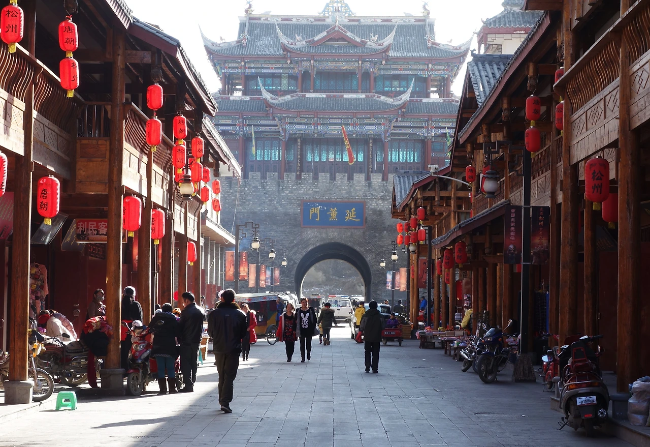 쑹판(松潘)의 옛 지명은 쑹저우(松州 송주). 쑹저우란 지명이 더 많이 눈에 띄었다. 관광이 돈이 된다는 걸 쑹판 지자체가 알아차렸나 보다. 성벽을 보수하고 성 안의 주요 거리와 쇼핑 타운도 잘 다듬어 놓았다. 시내에 사람이 많았지만 거의 현지인들이었고 나 같은 관광객은 찾아보기 힘들었다. 한겨울만 아니면 말트레킹을 하러 많이 오는 곳인지 현지 여행사들도 많았다.