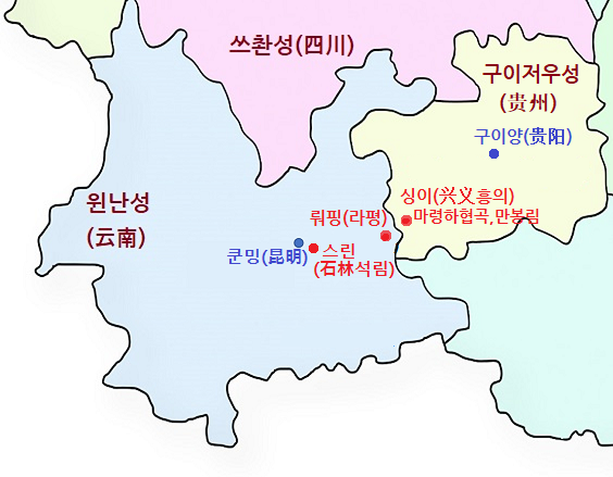 쿤밍에서 석림을 다녀온 후 구이저우성(贵州)의 싱이(兴义흥의)로 넘어갈 계획이었다. 쿤밍에서 싱이로 가는 길 중간에 있는 뤄핑(罗平[luópíng] 라평(나평))을 들를까 말까 계속 고민되었다. 1월 말인데 유채꽃이 폈을까?