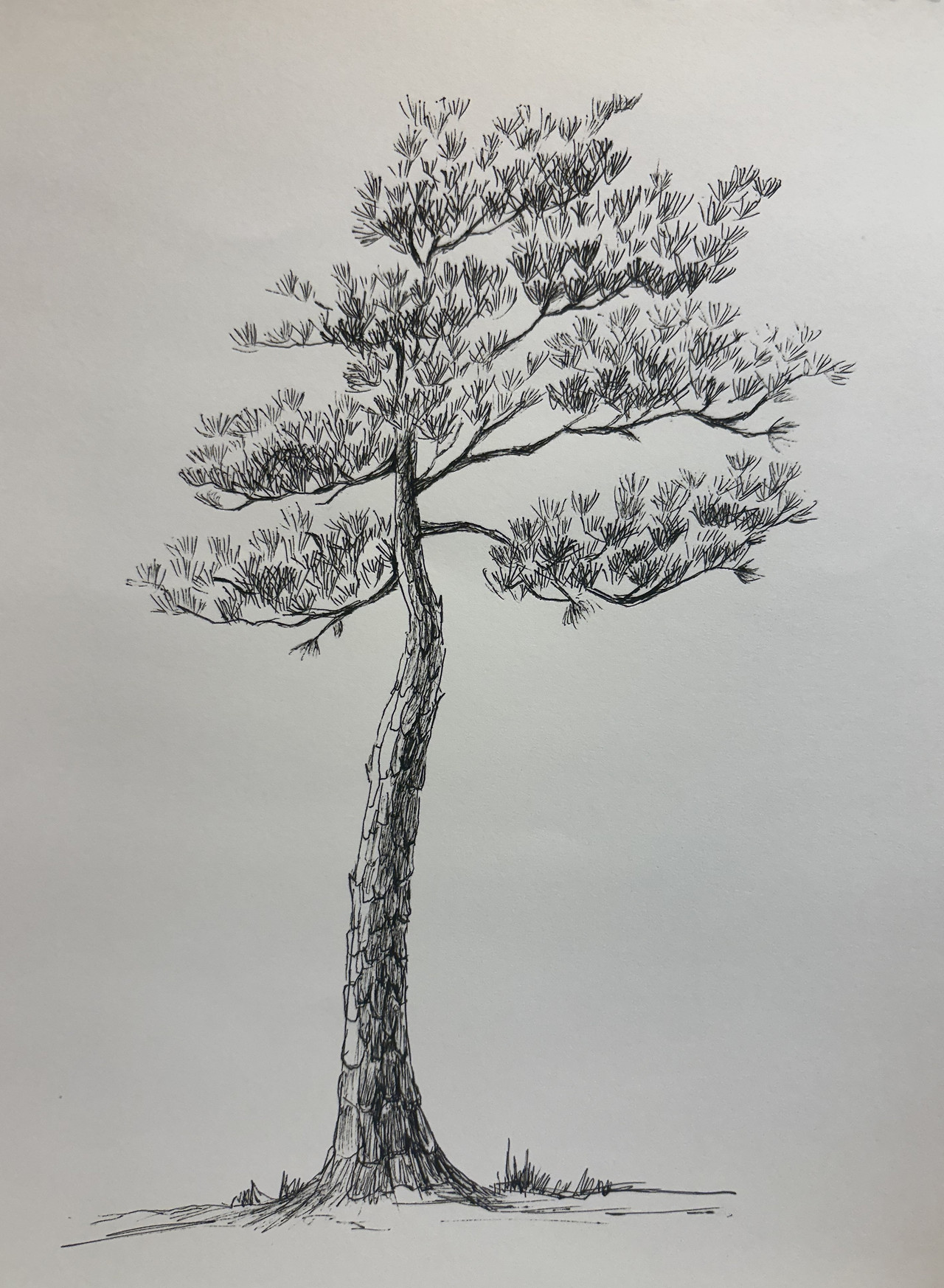 제일 많이 그리게 되는 나무가 뭘까? 가장 많이 보이는 나무겠지? 우리나라에서 제일 많은 나무 중에 하나가 소나무라고 하여 주변을 둘러보니 여기저기 다 소나무다. 아파트를 포함하여 반경 100m 안에 30개가 넘는 소나무들이 보인다. 이렇게 많았었다니.