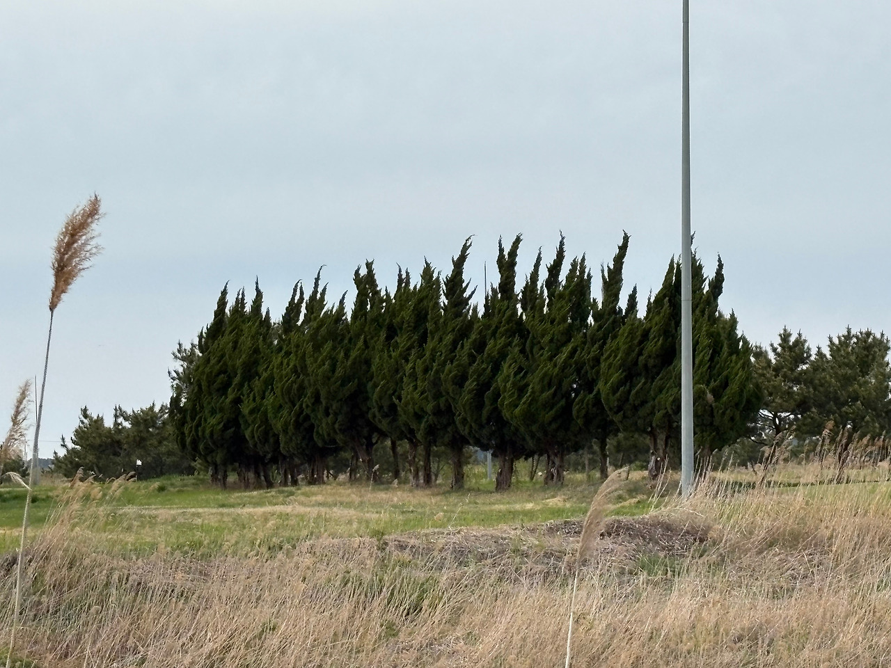 그런 바람을 맞으며 풍경을 둘러보는데 눈에 딱 띄는 나무들이 있었다. 그 바람을 맞으며 엉클어진 모습을 그대로 보여주며 아예 한쪽으로 쏠려버린 나무가 눈에 들어왔다. 보는 순간 '앗~고흐의 나무다'. 고흐의 그림에서 보던 나무가 떡하니 있었다. 고흐의 화풍에 의한 것이고 상상으로 그의 심리상태가 반영되어 헝클어지고 복잡한 모습을 그렸다고 생각했는데 그게 아니라 그런 나무가 실제로 존재하고 있었다. 저렇게 생긴 나무를 보고 그의 그림에 영감을 받은 게 틀림없다.