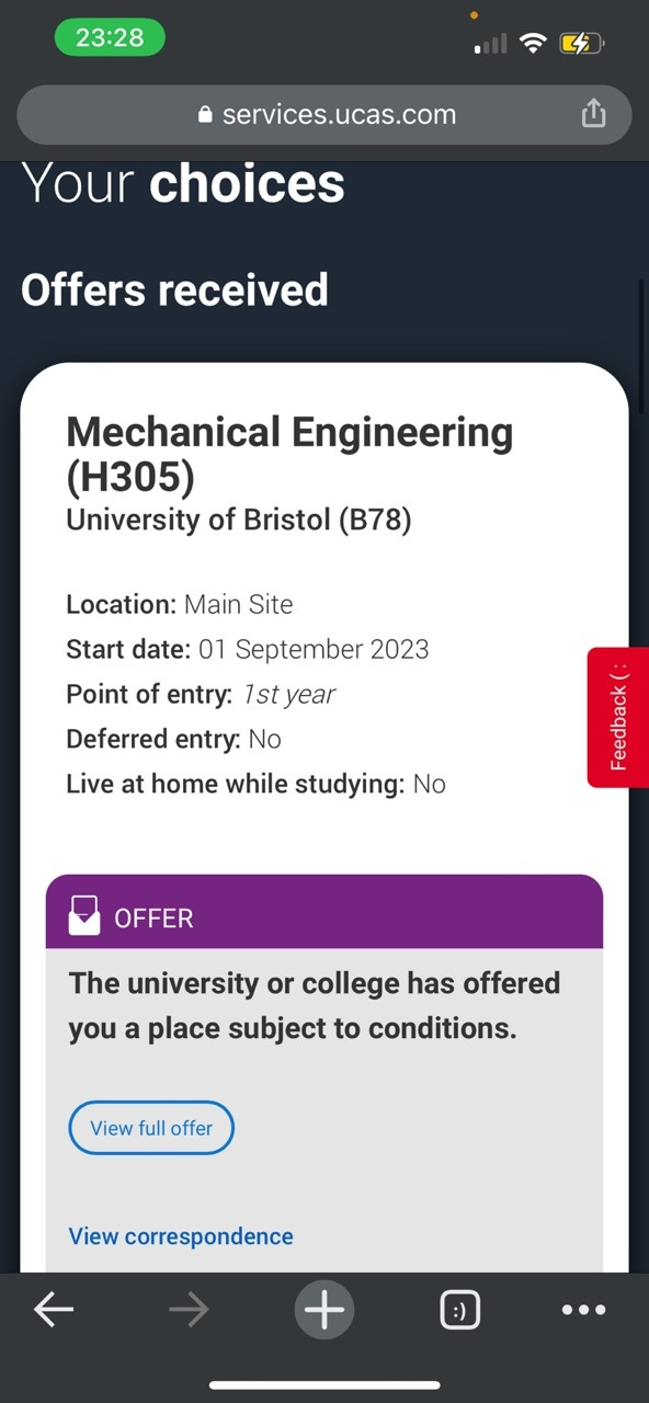 2022년 11월 7일 영국 Bristol 대학으로부터 오퍼를 받았다.
