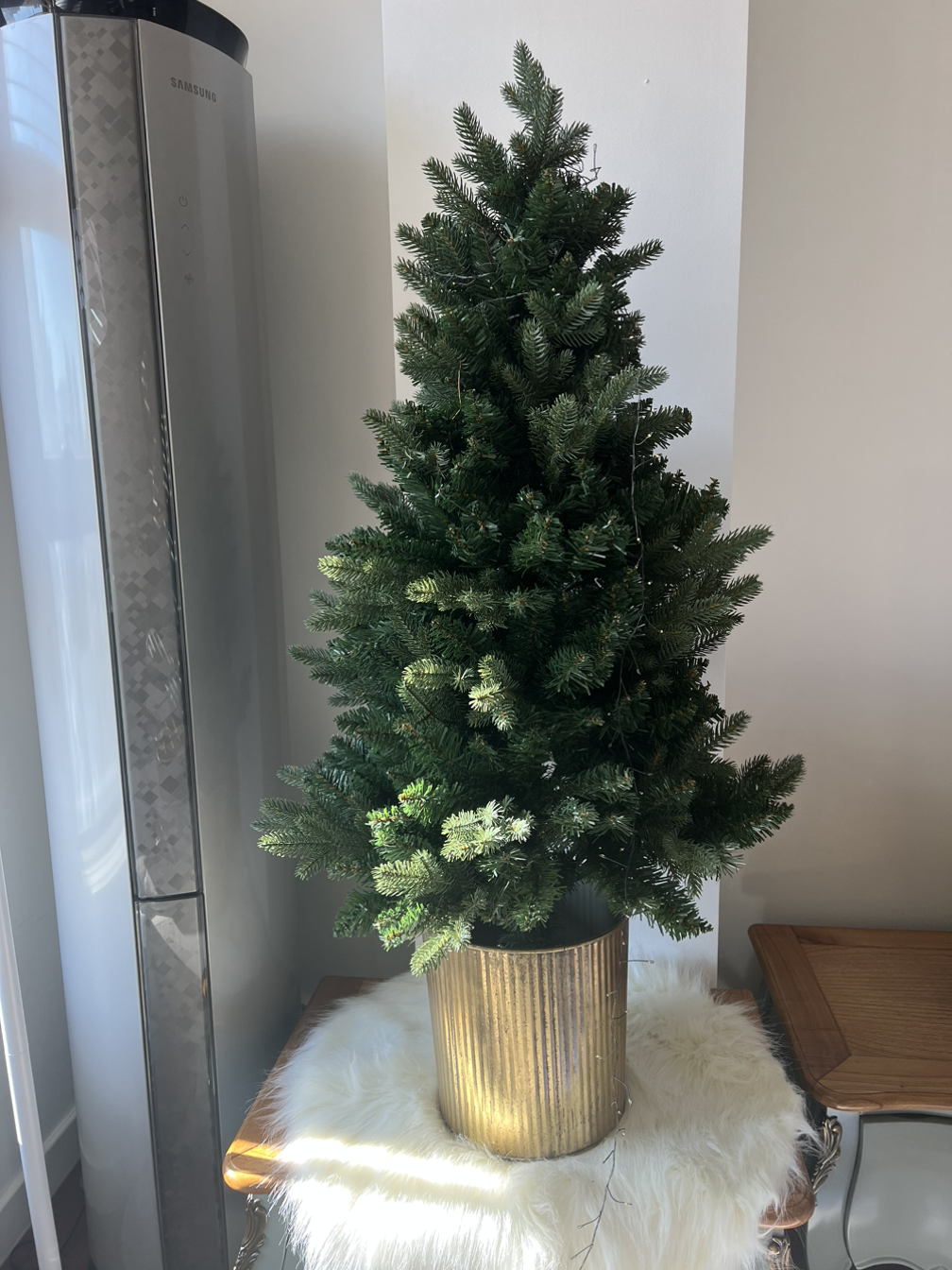좁은 상자에 들어있던 트리를 꺼내면 볼품이 없다. 2단으로 분리된 트리를 연결하고 뭉쳐진 가지를 일일이 빈 틈 없이 잘 펼쳐서 나무 모양을 만들어야 한다. 너무 싸구려면 플라스틱인 게 티가 나고 나뭇잎도 계속 조금씩 떨어지는데 이번엔 조금 더 주고 샀더니 이런 우려는 해소되었다. 지난번까지 사용하던 트리는 눈 내린 트리였는데 그 옆을 지나갈 때마다 눈처럼 생긴 하얀 가루가 떨어져 매번 청소한다고 너무 힘들었다. 그냥 기본 나무 모양, 색깔의 트리가 장식하기도 편리하다는 걸 다시 한번 깨닫는다.