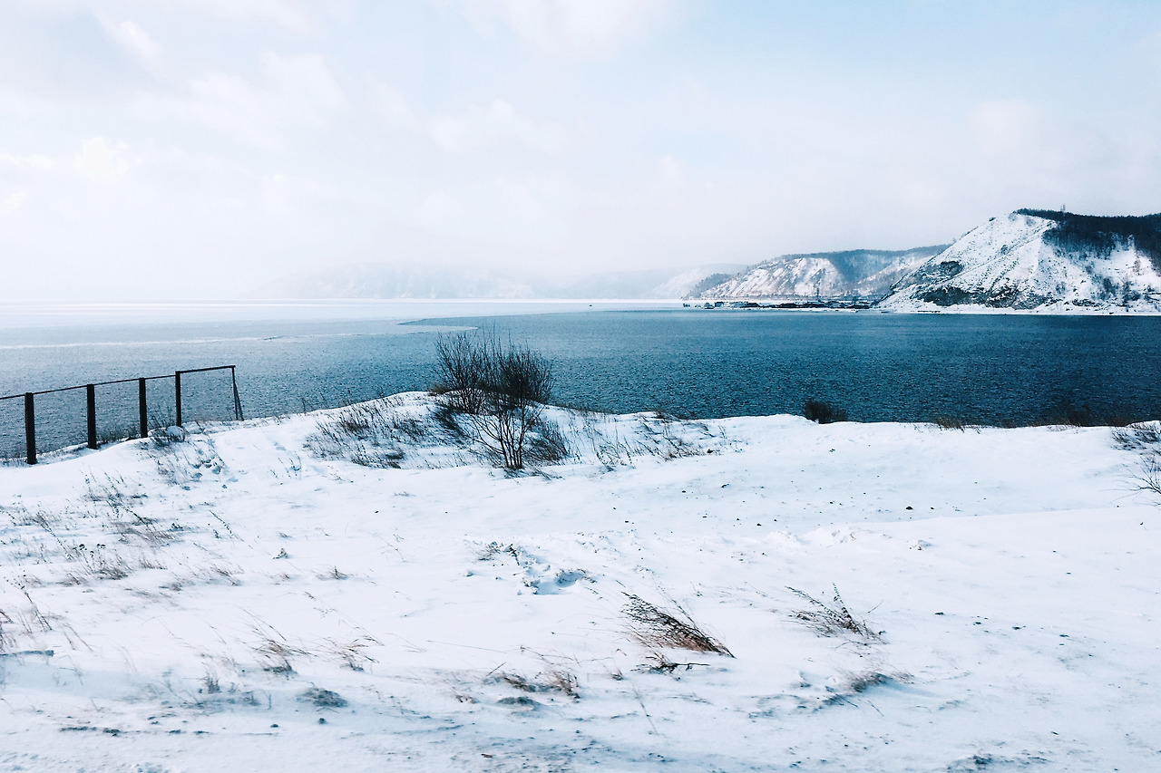 소풍가는 기분이 들었다. 시내를 빠져나가자 셔터를 누르고 싶은 장면들이 끝없이 이어졌다. 눈은 날리고, 도로는 검고, 양쪽의 숲은 눈부시게 하얬다. 내 오른쪽에는 대학생으로 보이는 승객이 졸고 있었는데 혹시라도 깰까봐 최대한 셔터를 아꼈다. 숲 근처의 정류장에서도 사람들이 타고 또 내렸다. 오르막에서 내리막으로 또 다시 평지로 그렇게 1시간 쯤을 달렸을 즈음 환호성이 터졌다. 바이칼 호수가 보였다. 하얗고 푸르고 더 푸르고 검푸른 것들이 맑고 황량하면서 아름다웠다. 얼지 않은 호수와 언 호수가 만나는 경계 부근에는 사막의 모래 같은 눈과 메마른 풀들이 바람결을 따라 누워 있었다. 감탄의 환호가 끝나기도 전에 버스는 리스트비얀카의 중심가인 마약 호텔 앞에 멈췄다. 종점이었다. 차 안에 있던 사람들이 모두 내렸다. 운전수는 목적지 이름표를 이르쿠츠크로 바꾸어 달고 또 다시 승객들을 기다렸다.