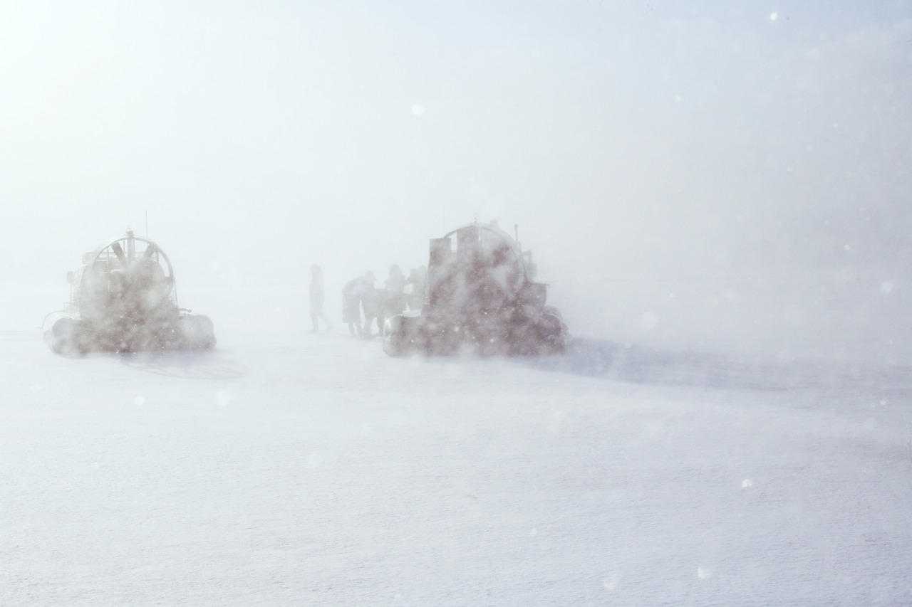 한 무더기의 사람들이 얼음 위를 달리는 보트에서 내리고, 또 탔다. 비용은 500루블. 블로그에서 본 적 있는 에어보트였는데 혹시나 얼음 속에 얼어 있는 기포를 보고 올 수 있을까 싶어 배 위에 올랐다. 미끄러지듯 얼음 호수 위를 달리는 스릴 넘치는 보트에는 대부분 가족이나 연인들이 타고 있었다. 혼자 온 사람은 나 밖에 없었다. 보트는 10분 남짓 달리다가 난파선처럼 보이는 커다란 배 앞에 멈췄다. 그곳에 내린 사람들은 그 배 앞에서 기념 사진을 찍었다. 나는 혼자서 투명한 수면 아래를 보고 싶어 얼음 위에 쌓인 눈을 치웠는데, 사진으로 보던 청량한 블루의 기포들은 전혀 보이지 않았다. 운전수는 그런 나를 보더니 그걸 보려면 꽤 멀리 가야 한다고 말했다. 그리고 그곳은 지금 위험한 상태라고 덧붙였다. 어찌 되었건 못 본다는 말이었다.