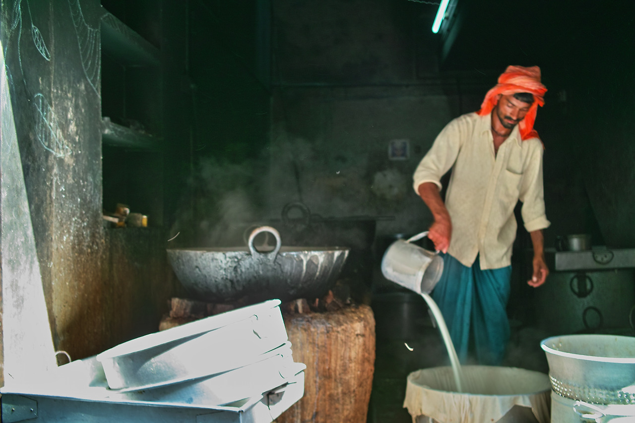 내 옆으로 어떤 장면이 스쳤다. 인도 치즈인 빠니르(paneer)를 만드는 공장이었다. 모락모락 피어오르는 김, 주홍색의 터번, 터키 블루색의 바지. 조그마한 공간에서 따뜻함이 느껴졌다. 색들의 조화마저 아름다웠다. 마치 인상파 그림 속 장면처럼. '누를까? 말까?' 어김 없이 찾아온 망설임의 순간 후 얼른 카메라를 들어 '한 번의 셔터'를 눌렀다. 그리고 아무 일도 없었던 것처럼 가던 길을 계속 걸었다.