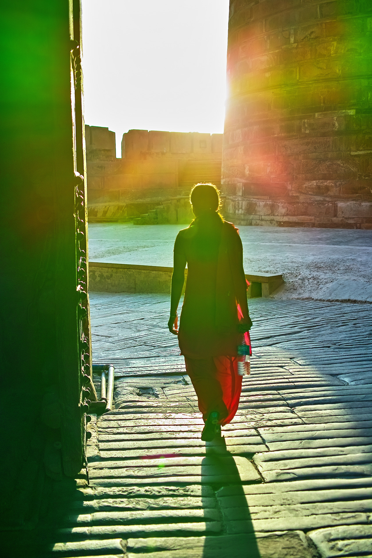 거의 다 빠져 나왔을 무렵이다. 여인이 게이트를 지날 때 뭔가에 홀린 것처럼 셔터를 눌렀다. 뒷모습에는 마음을 건드리는 뭔가가 있다. 뭐라 꼭 집어 말할 순 없지만 어떤 서글픔 같은 것? 석양빛 또한 그렇다. 비록 아그라 성은 구경하지 못했지만, 이 사진 한 장으로 충분하다는 생각이 들었다.