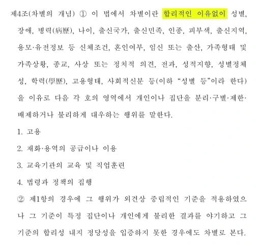 「평등 및 차별금지에 관한 법률안」 제정을 두고