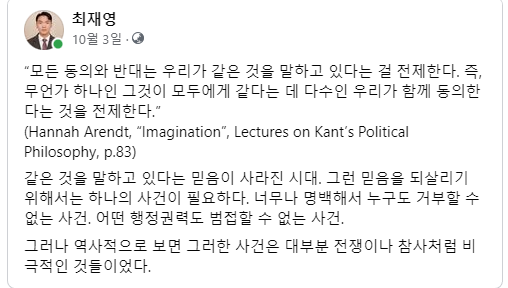 10월 3일, 글을 쓸 당시에는 하나의 사건에 여러 해석이 있었다.