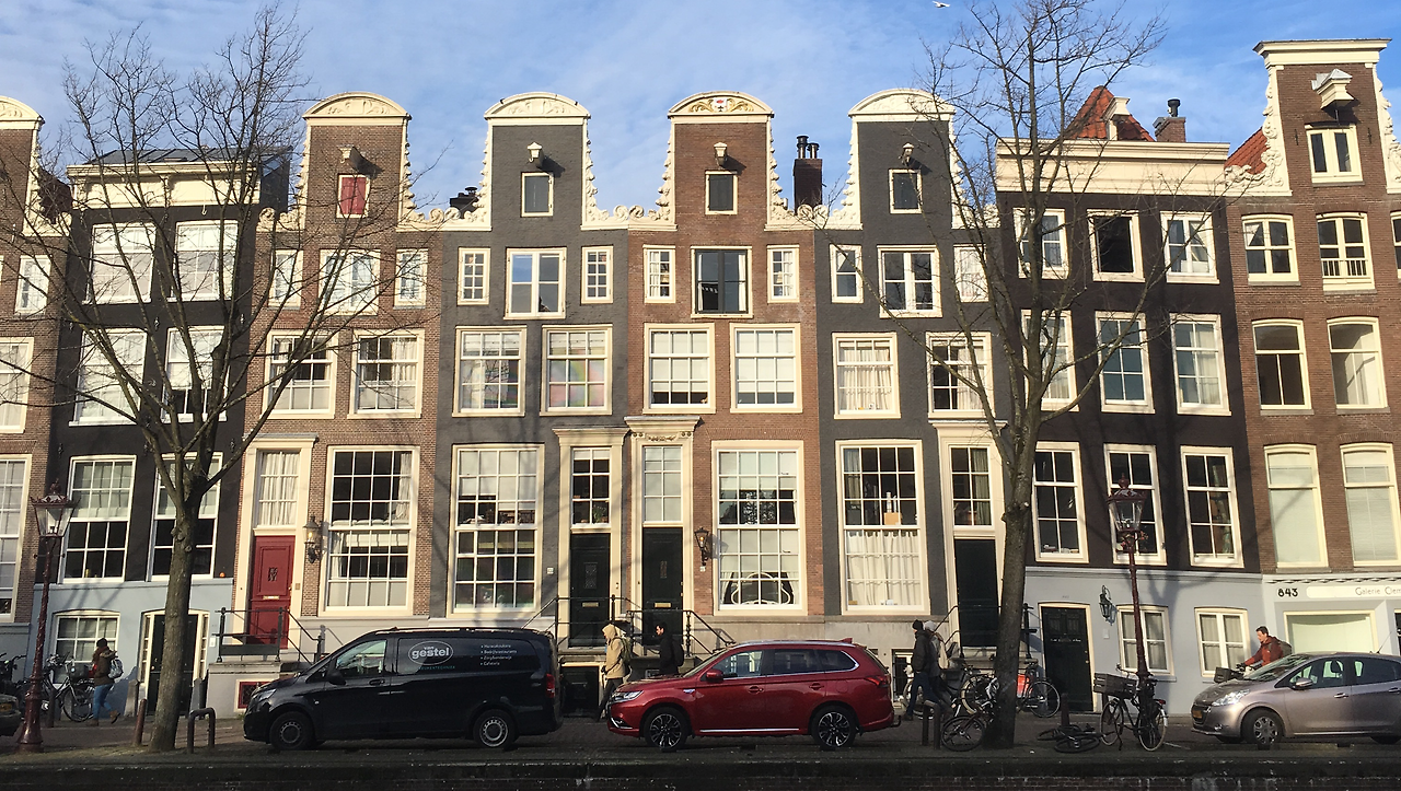 25. 암스테르담 특유의 분위기는 수로를 따라 다닥다닥 붙어있는 건물들에서 시작된다. 물 위에 지어진 도시어서 약한 지반을 버티기 위해 건물이 서로 의지할 수 있도록 세워진 것이다.