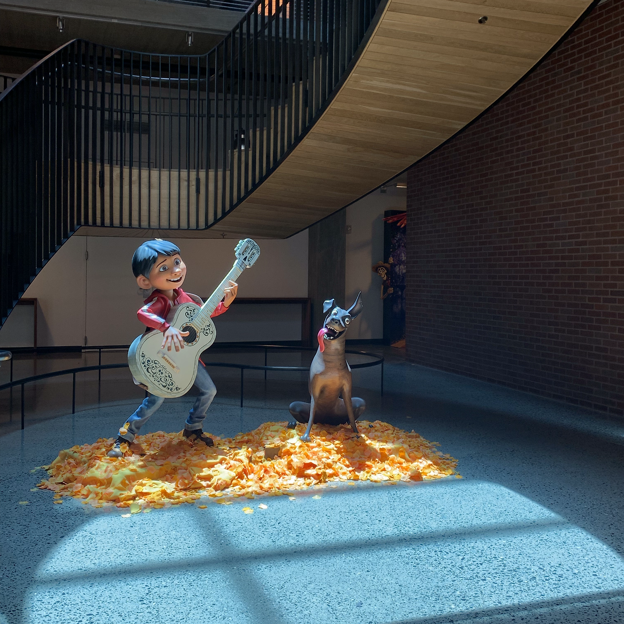 47. 건물 안에는 픽사 캐릭터들이 여기저기 숨어있다. 내가 갔을 때는 ‘토이스토리4’가 개봉한 직후여서 메인로비에는 온통 토이스토리 모형이 가득했고 화장실 표지판에는 남자는 우디, 여자는 보핍이 그려져 있었다. ‘도리를 찾아서’의 문어 행크가 벽 여기저기에 보호색을 띄고 숨어있기도 하고 ‘인크레더블’ 엄마가 2층에서 몸을 쭈욱 늘려서 달려가고도 있다. 건물 천장에서 빛이 조금 새어 나오는 공간에 ‘코코’ 모형을 세워놔서 진짜 영화 속 장면을 보는 것 같기도 하고 ‘인사이드아웃’ 빙봉 로켓을 타면 바로 무지개를 타고 날아오를 것 같다.