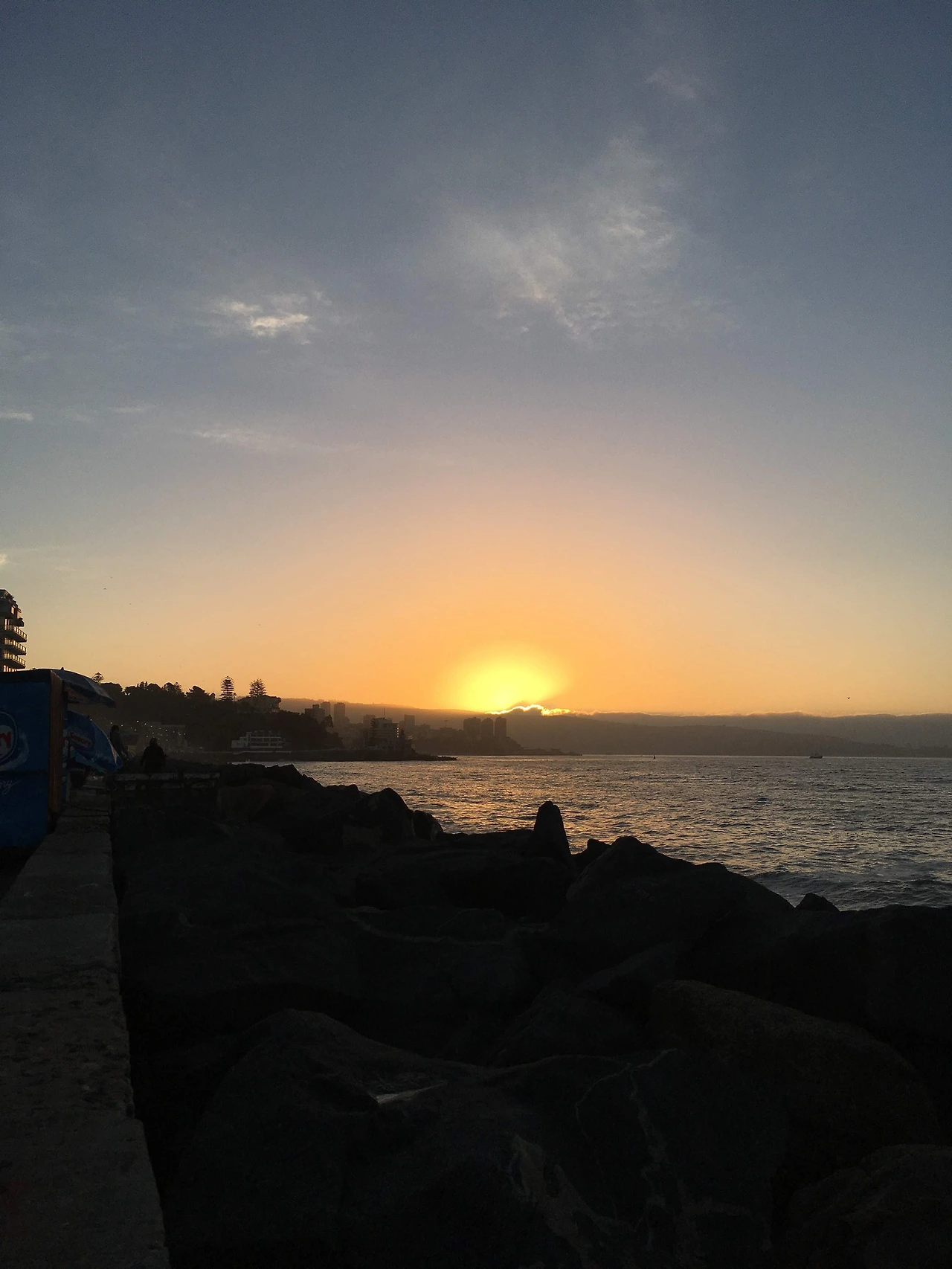 나는 여행을 가면 하루일과가 끝나고 마무리하기 위한 나만의 의식? 같은 것이 있는데 그건 바로 Sunset을 보는 것이다. Viña del Mar에서의 마지막 날, 방파제에 앉아서 해 지는 걸 기다리고 있는데 어떤 청년이 기타를 들고 다가온다. 내 옆에서 연주를 해도 되겠냐고. 아 이런 감성 너무 좋다. 곧바로 그 청년은 기타 케이스를 펼쳐놓고 연주를 시작한다.