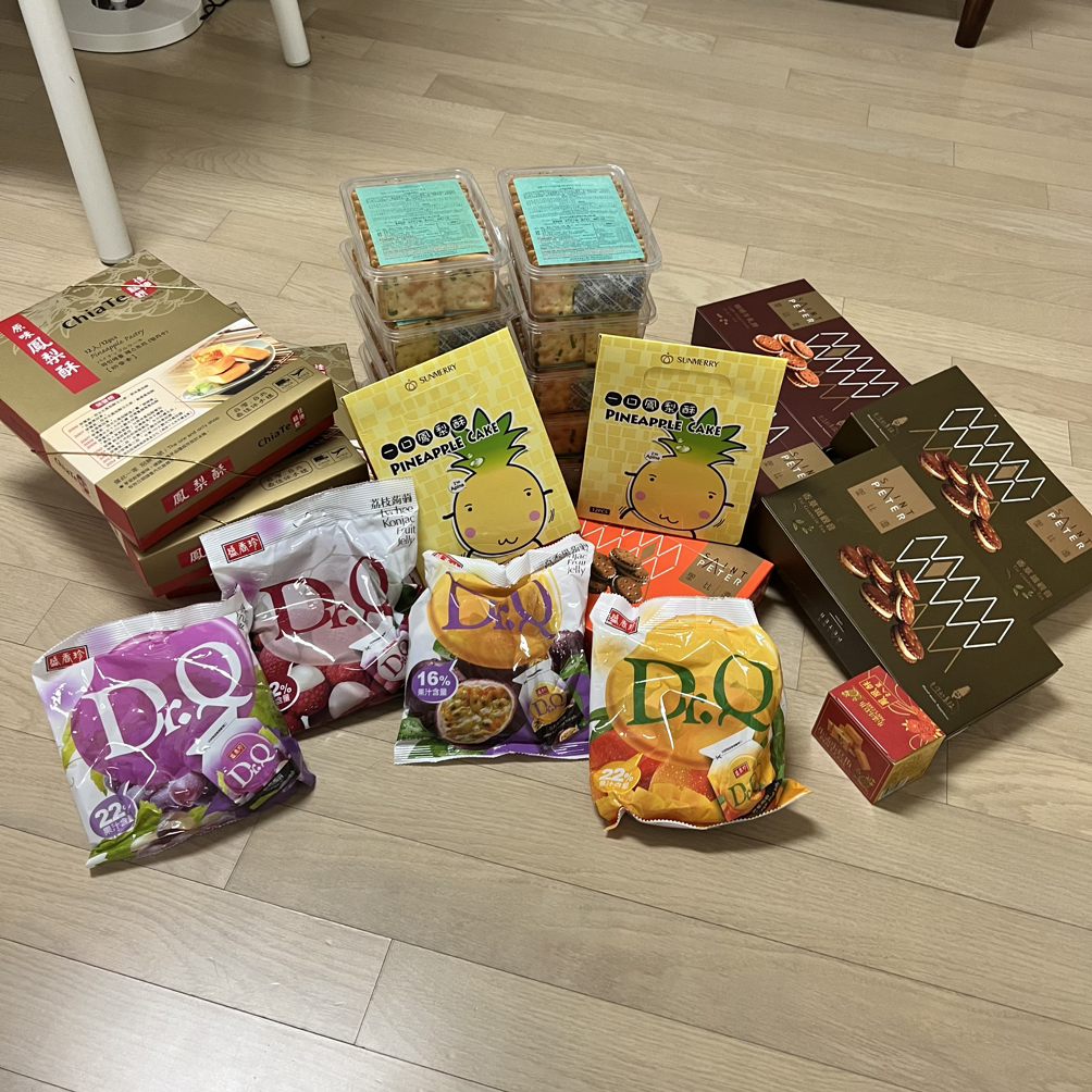 식사를 마치고 쉬다가 슬프지만 공항으로 출발하려고 택시를 탔다. 가는 길이 또 왜 이렇게 예쁜지 아쉬움을 뚝뚝 흘리며 다음에 또 대만을 오자는 다짐을 해댔다. 공항은 왜 이렇게 또 가까운 건지 금방 도착을 했다. 하지만 우리의 여행은 이게 끝이 아니었다. 우선 저가 항공을 타고 왔기 때문에 수화물 무게가 15kg을 넘으면 안 됐다. 그래서 저울을 찾아 무게부터 쟀는데, 19.4kg이라는 놀라운 숫자를 보았다. 아니 이런, 내가 손으로 들어보았을 때는 나름 번쩍 들렸었는데 왜 이렇게 무거워졌지? 차라리 수화물을 추가 구매하려고 검색을 해보니, 공동 운항은 그런 걸 구매할 수 없다고 떠서 포기하고 무게를 맞추기로 했다. 캐리어에서 누가 크래커를 하나씩 꺼내며 무게를 재고 약 4kg 정도를 빼서 따로 담았다. 그리고 무게를 재보니 15.9kg이 되었다. 기적같이 딱 맞춘 나 자신에게 무한 칭찬을 날렸다. 그렇게 수화물을 보내고 이지카드에 남은 200 TWD를 사용하기 위해 방앗간 가듯이 편의점에 갔다. 그리고 거기서 내 사랑 치아더 펑리수가 놓여있는 걸 보았다. 블로그에는 공항에 없다고 했는데 어쩜 이렇게 널려있는지 놀라울 뿐이었다. 그렇지만 이미 샀으니까 분노는 넣어두었다.